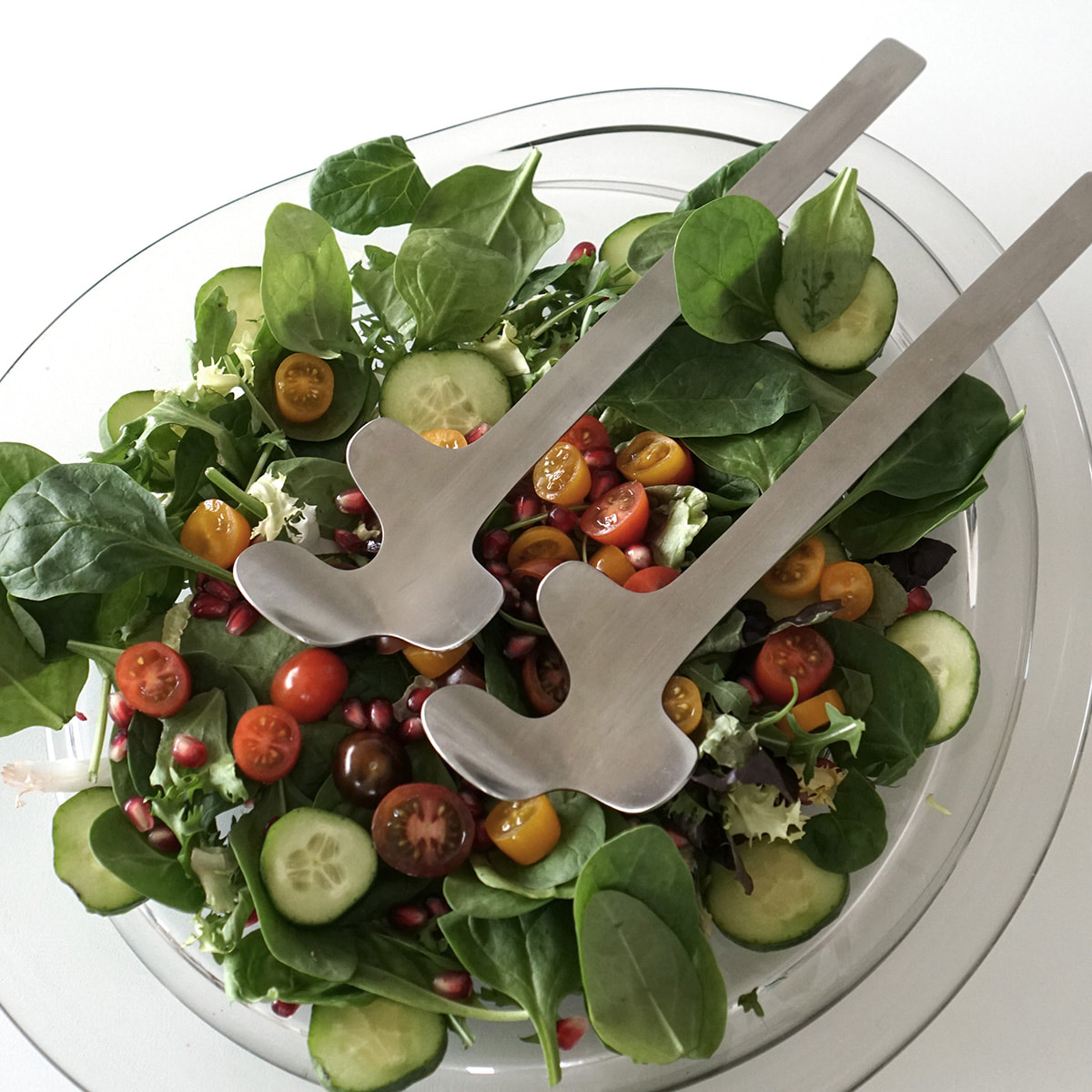 Ce magnifique service à salade est parfait pour la table à manger. Design sympa et très fonctionnel. Grâce aux têtes légèrement incurvées, juste la bonne quantité de salade arrive dans l’assiette.