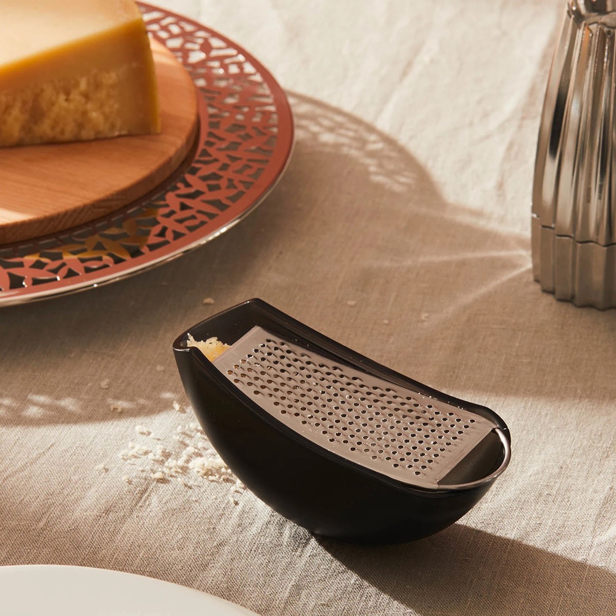 La râpe à fromage Parmenide est une râpe élégante avec un récipient qui permet de recevoir le fromage râpé mais aussi de le servir à table et de le stocker.