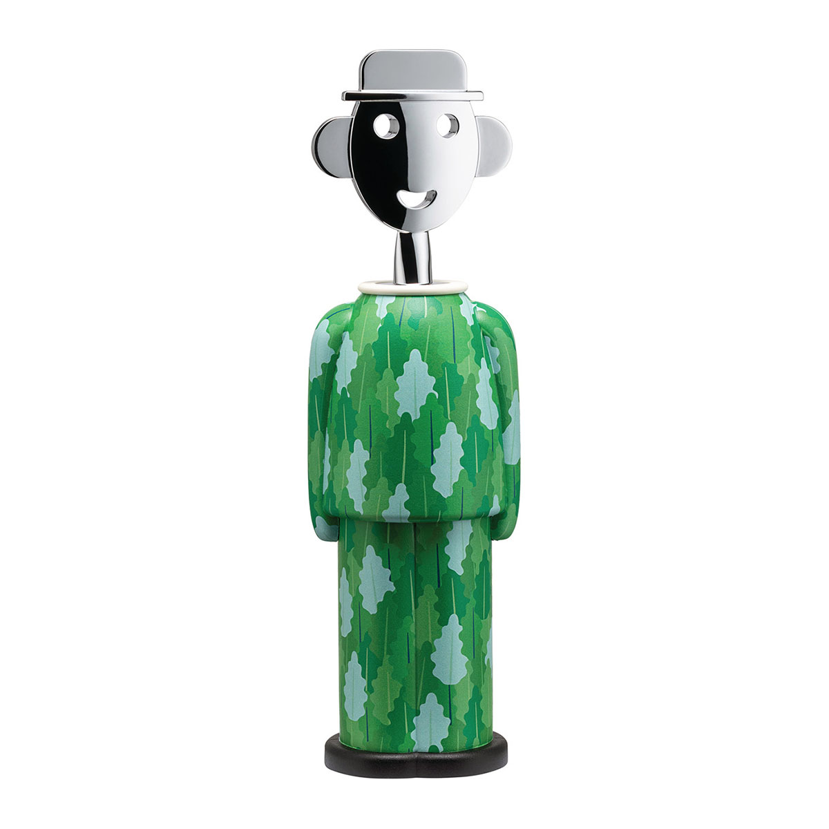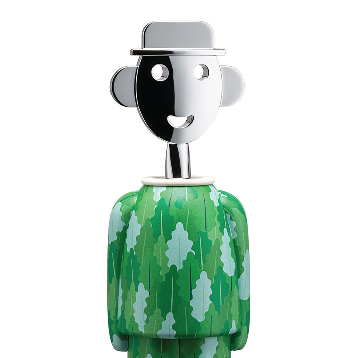 Pour célébrer le tire-bouchon créé par son père Alessandro, Fulvia Mendini a imaginé un conte de fées dans une forêt de chênes, où les personnages dansent en quête de désirs et de secrets. Cela a donné naissance à une nouvelle robe-arbre, motif accrocheur qui met en valeur le design délicat de ce tire-bouchon iconique.