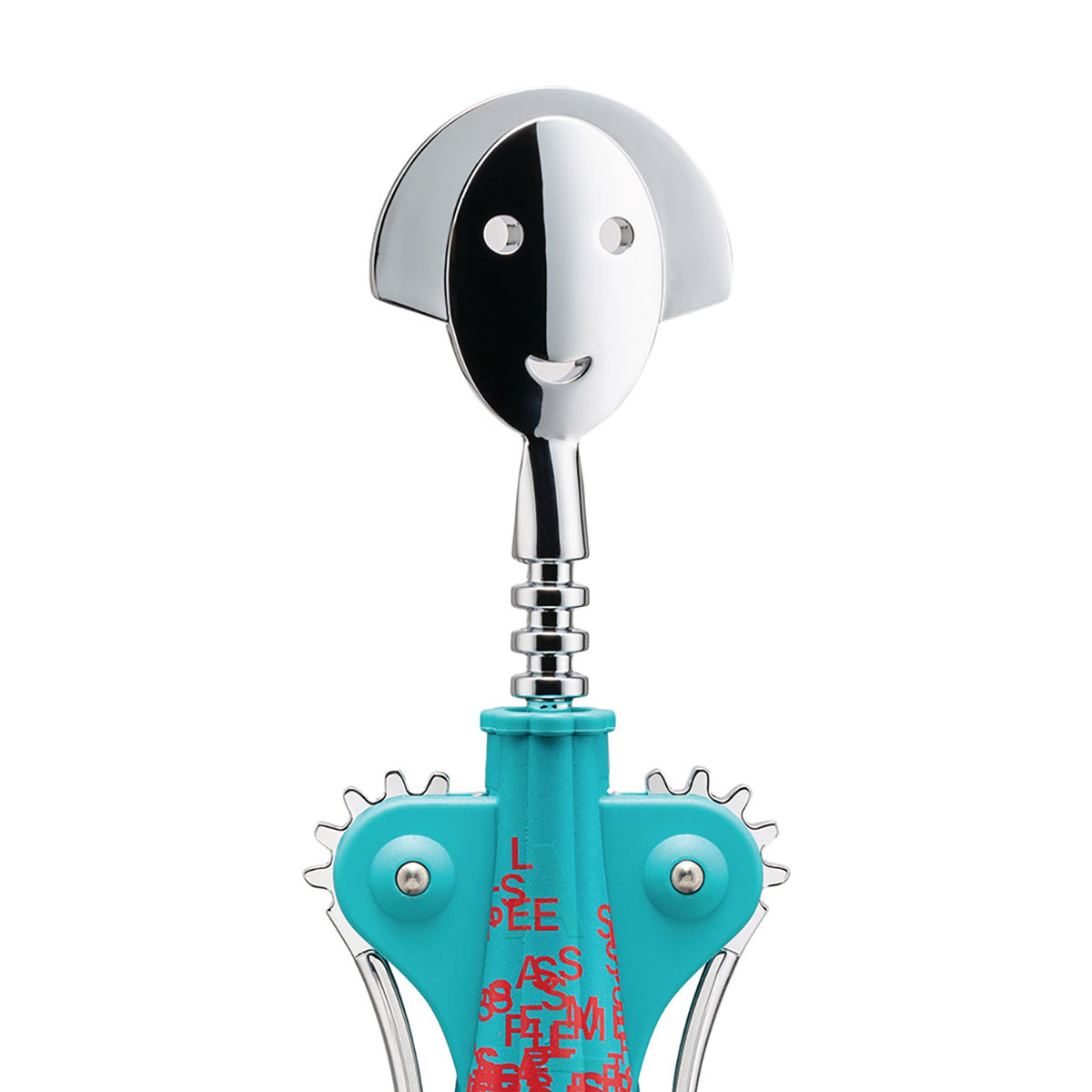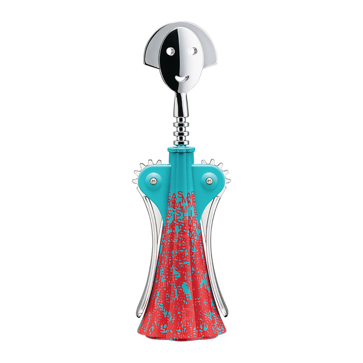 Le trio créatif de Studio Temp s’inspire du street art pour proposer une interprétation contemporaine de ce tire-bouchon d’Alessandro Mendini. Les graphismes reflètent une empreinte personnelle mêlant signalisation et protection des données. En hommage au père d’un designer radiologue, des éléments phosphorescents apparaissent dans l’obscurité, créant une juxtaposition surprenante de références et de souvenirs.