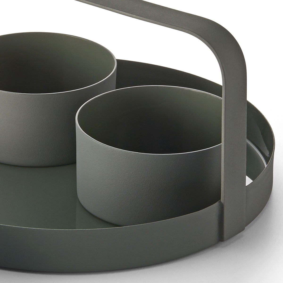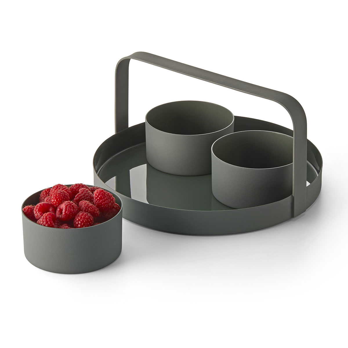 Plateau à goûter CLARA avec 3 bols en acier thermolaqué de Philippi.