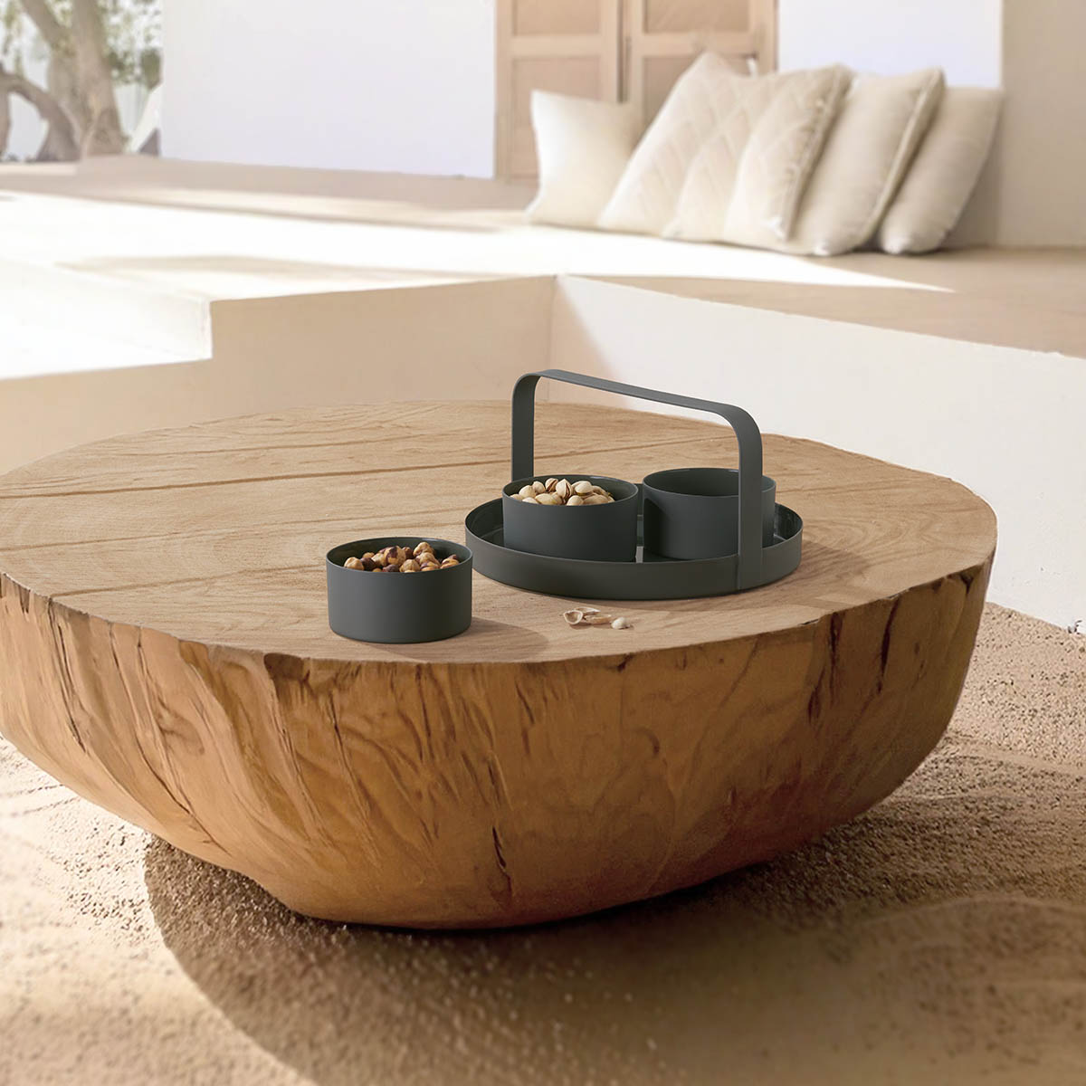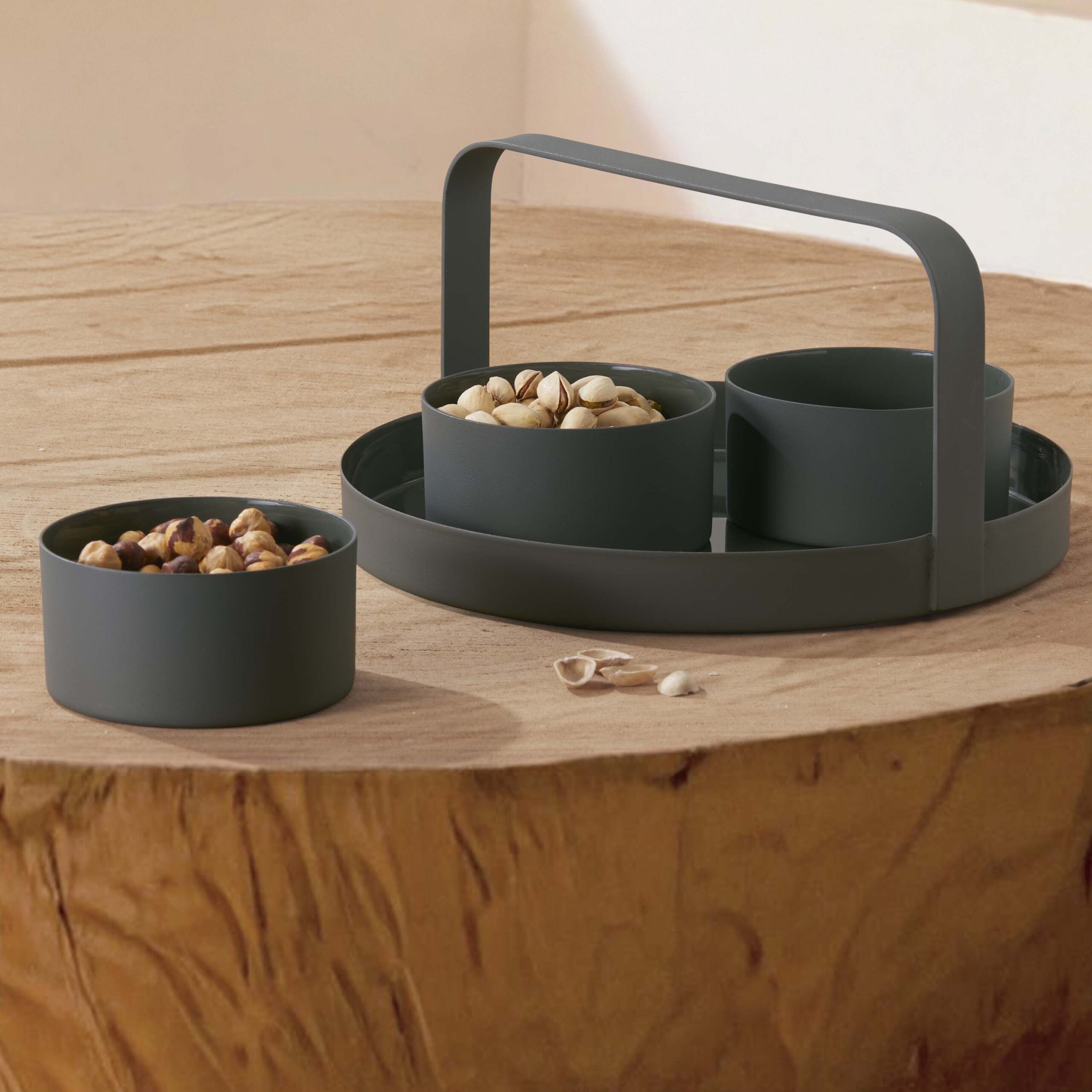 Un plateau, trois bols, une multitude d’utilisations possibles. Le service à snacks CLARA, minimaliste et moderne, composé de quatre pièces, est fabriqué en acier thermolaqué mat et doté d’un intérieur émaillé alimentaire.