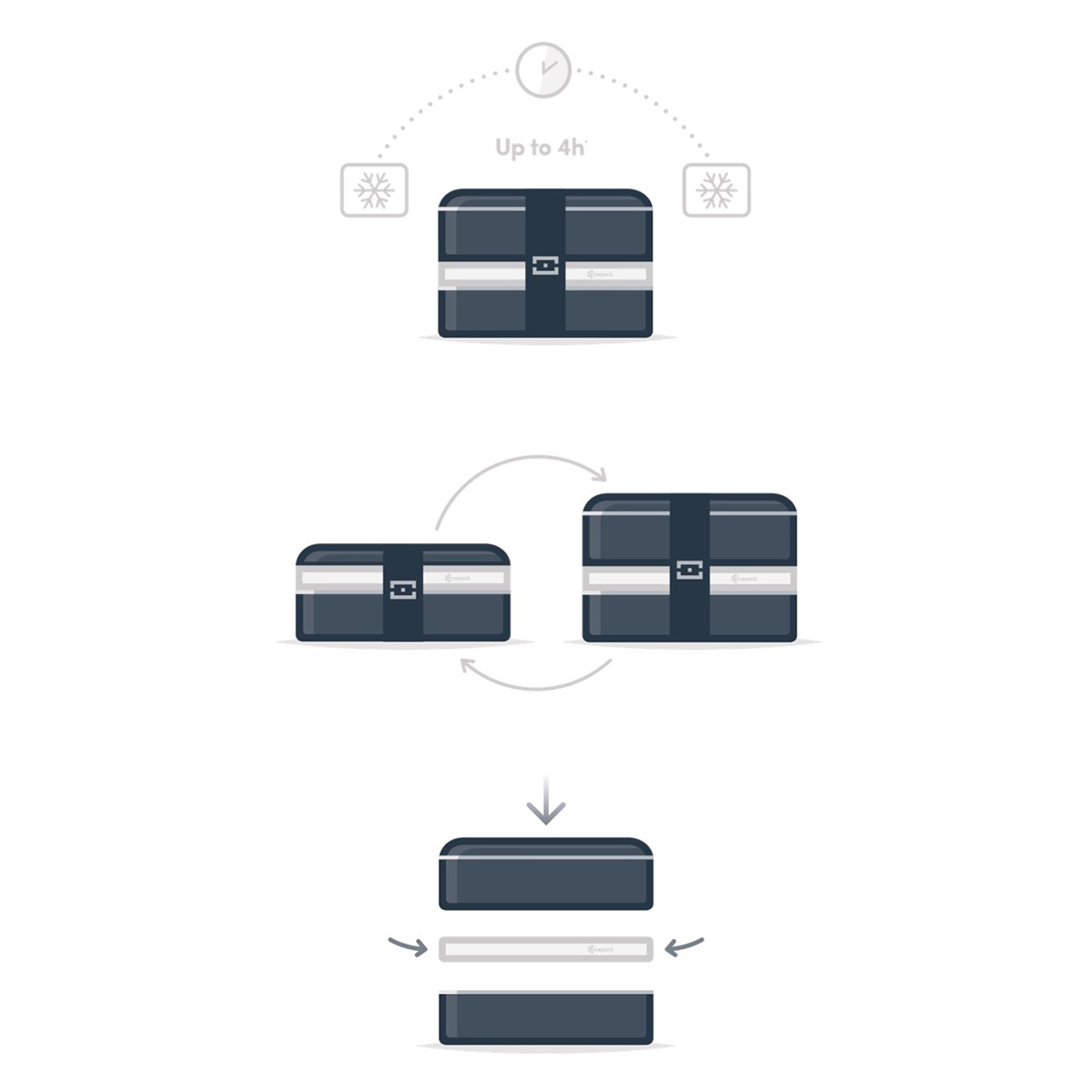 Pratique: L’ice pack MB I-cy peut être utilisé avec un ou deux récipients du bento MB Original ou comme un ice-pack classique dans le sac isotherme MB E-zy.