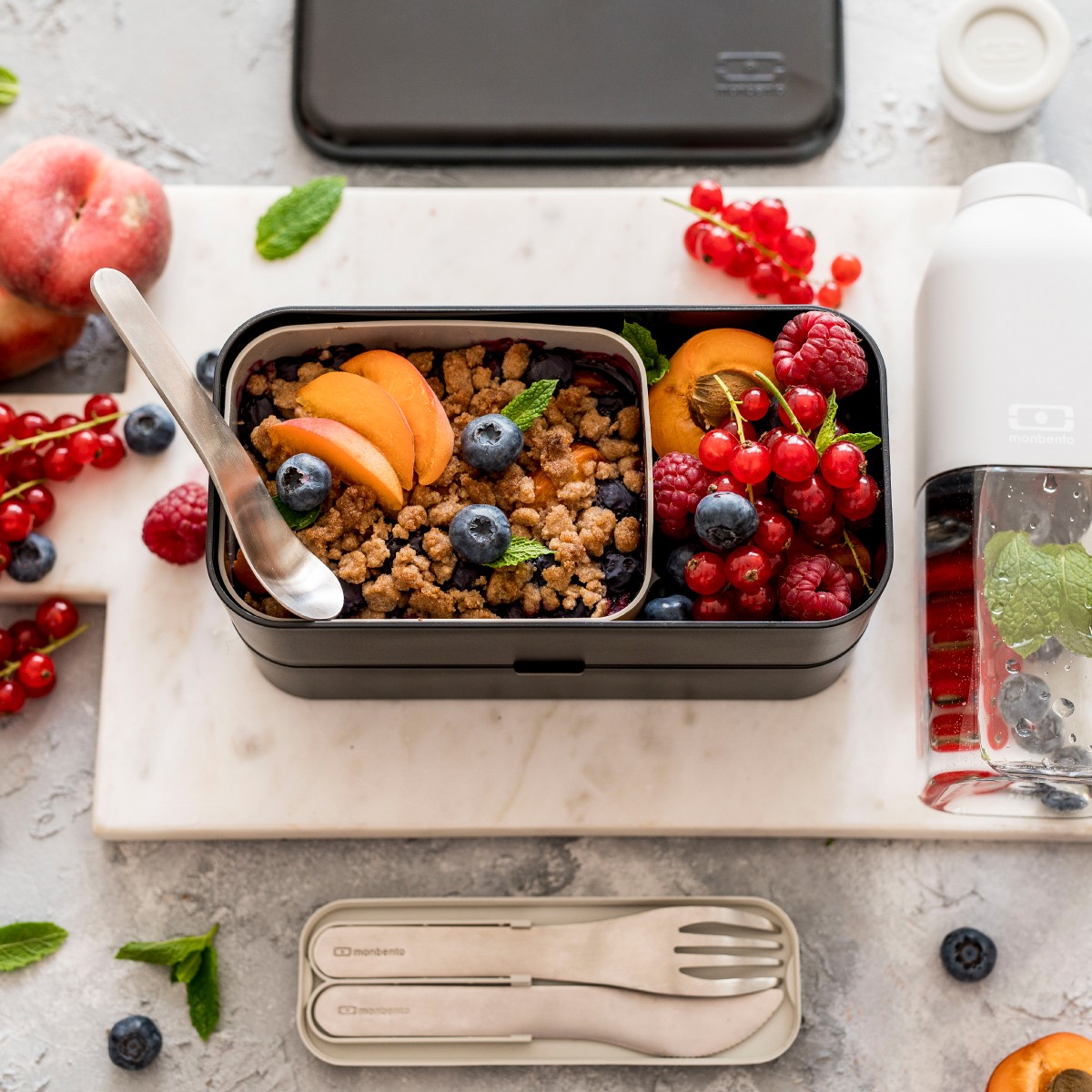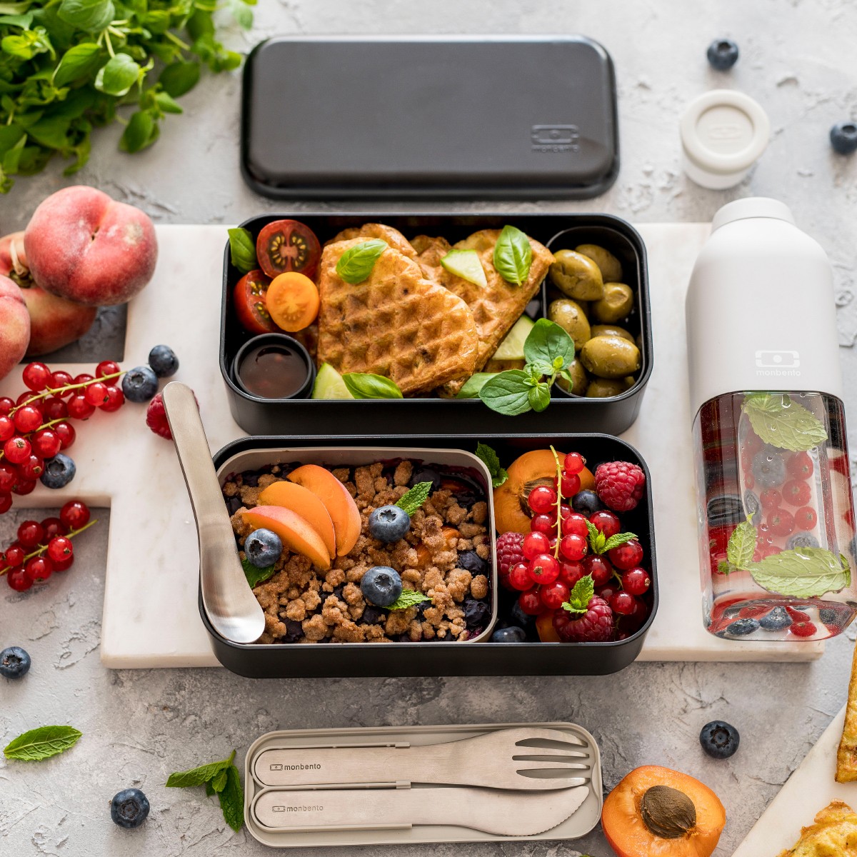 Pratique, la boîte repas Monbento est composée de 2 récipients hermétiques et comprend un séparateur amovible pour compartimenter votre bento selon vos envies. La boîte à repas Monbento est le compagnon idéal pour les déjeuners au bureau, pique-niques et autres collations.