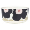 Ce bol est décoré du motif classique Unikko. Le bol est en grès blanc, résistant au lave-vaisselle, au four, au micro-ondes et au congélateur.