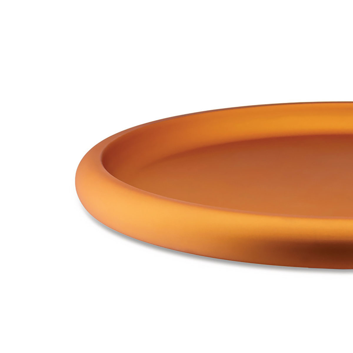 Fasciné par la forme des plateaux en aluminium sur lesquels sont traditionnellement servies les pintes de bière Kölsch à Cologne, Federico Angi a imaginé un objet d’apparence simple et familière. Discolo est un centre de table doté d’un bord généreux qui dissimule un design et une fabrication complexes. Son corps en aluminium anodisé souligne la forme de l’objet et lui confèrent une forte présence scénique.