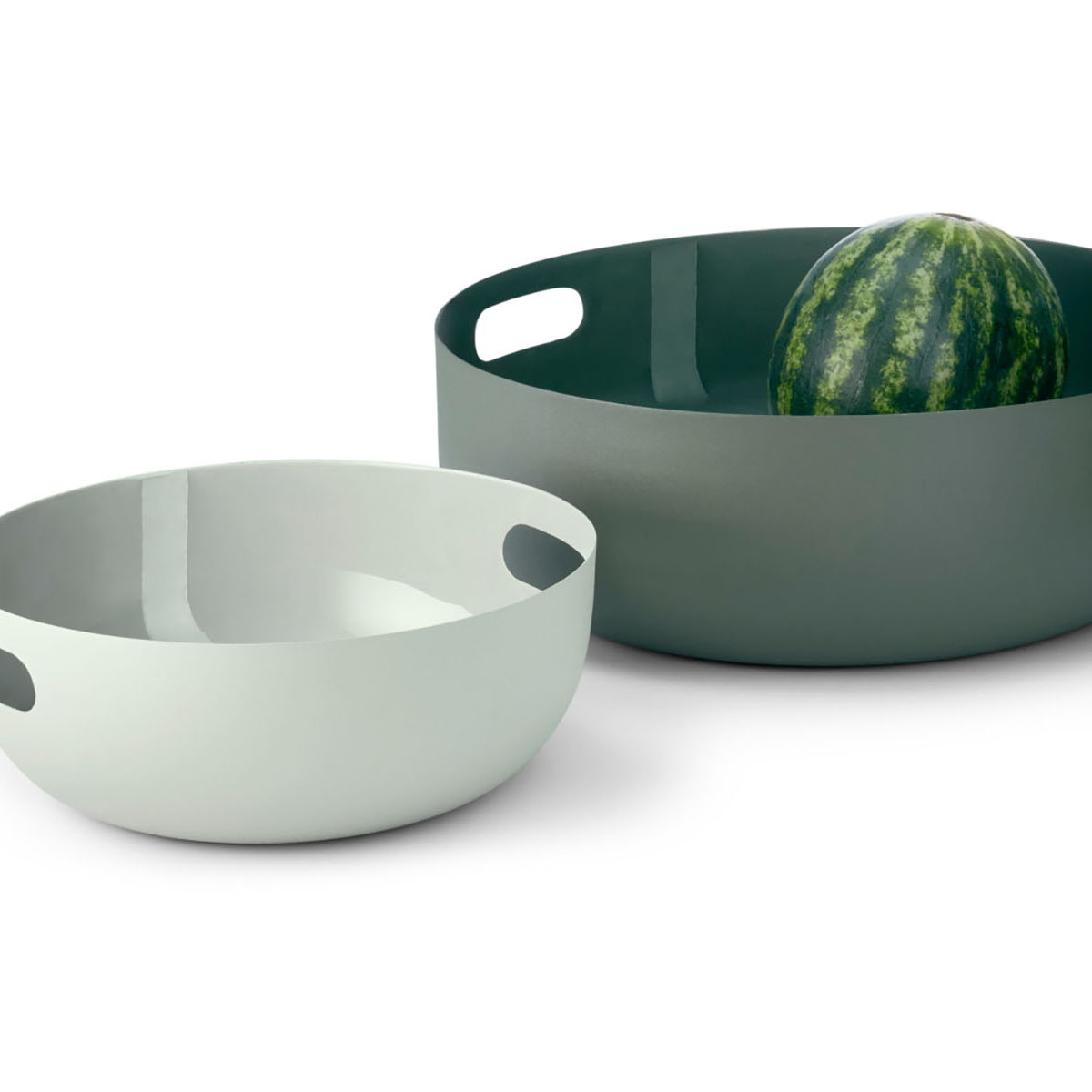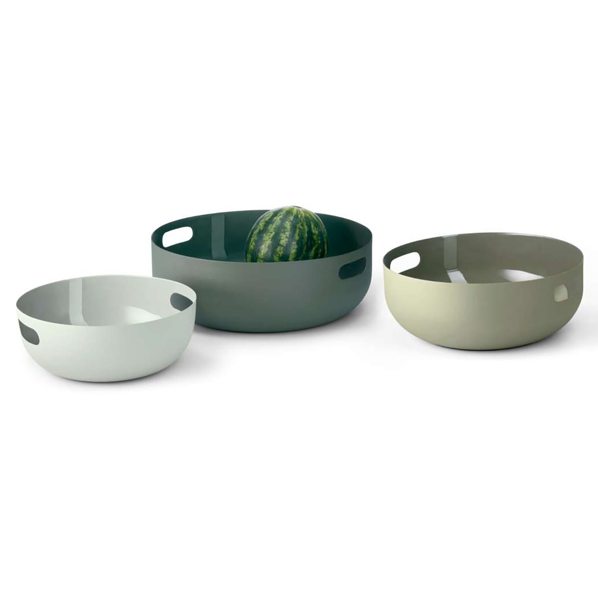 L’ensemble de trois bols COPENHAGEN en style scandinave a un revêtement par poudre mat à l’extérieur tandis que l’intérieur est émaillé brillant. En acier robuste et durable, les bols sont sans danger pour les aliments.