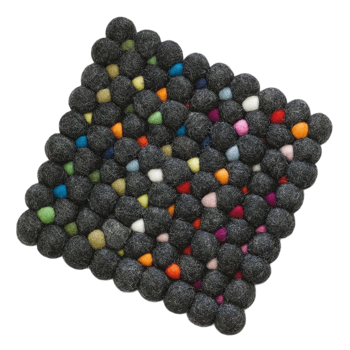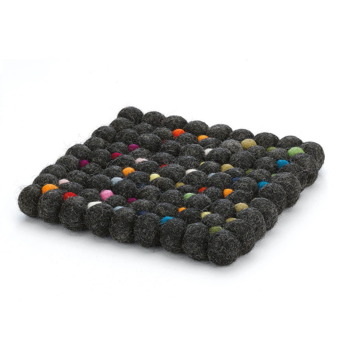 Ces magnifiques dessous de plat en pure laine sont produits à la main au Nepal. Chaque dessous de plat est composé d’environ 100 petites boules de feutre.