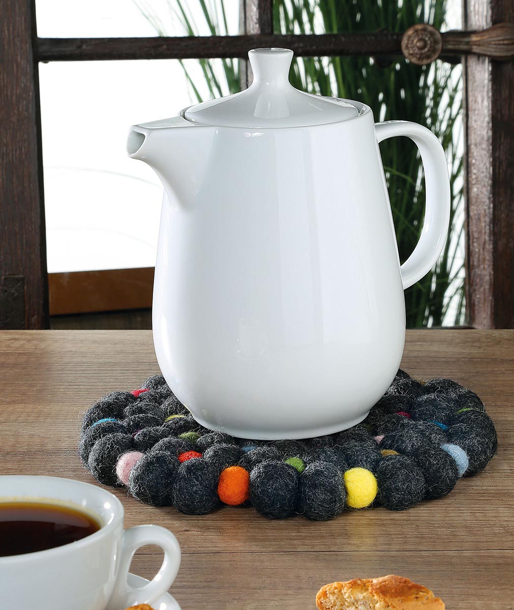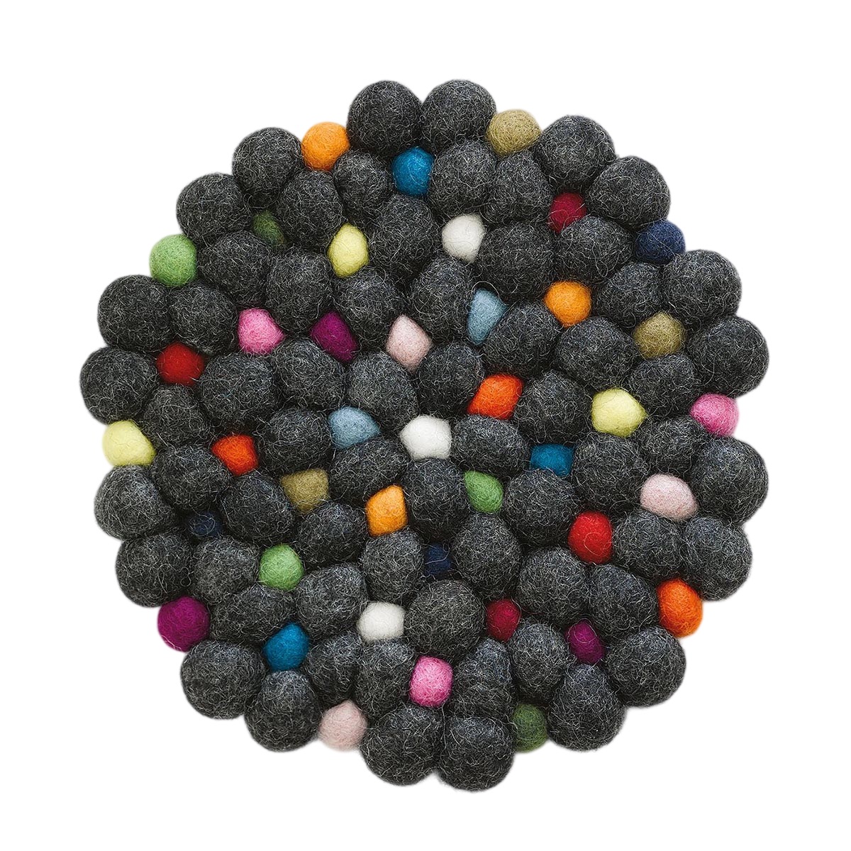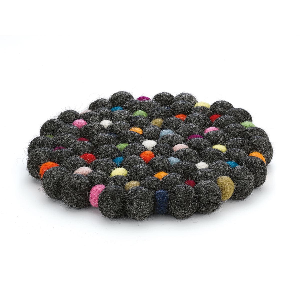 Ces magnifiques dessous de plat en pure laine sont produits à la main au Nepal. Chaque dessous de plat est composé d’environ 100 petites boules de feutre.