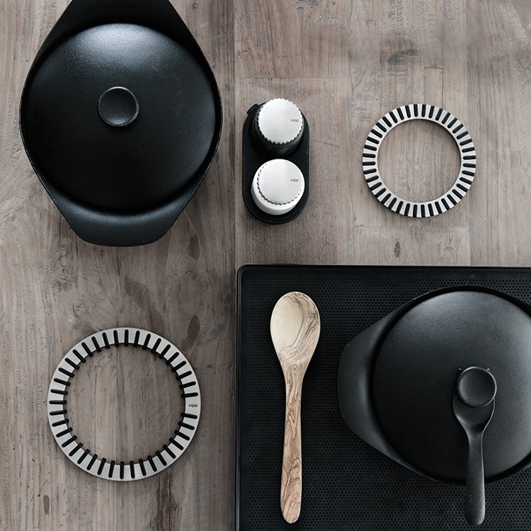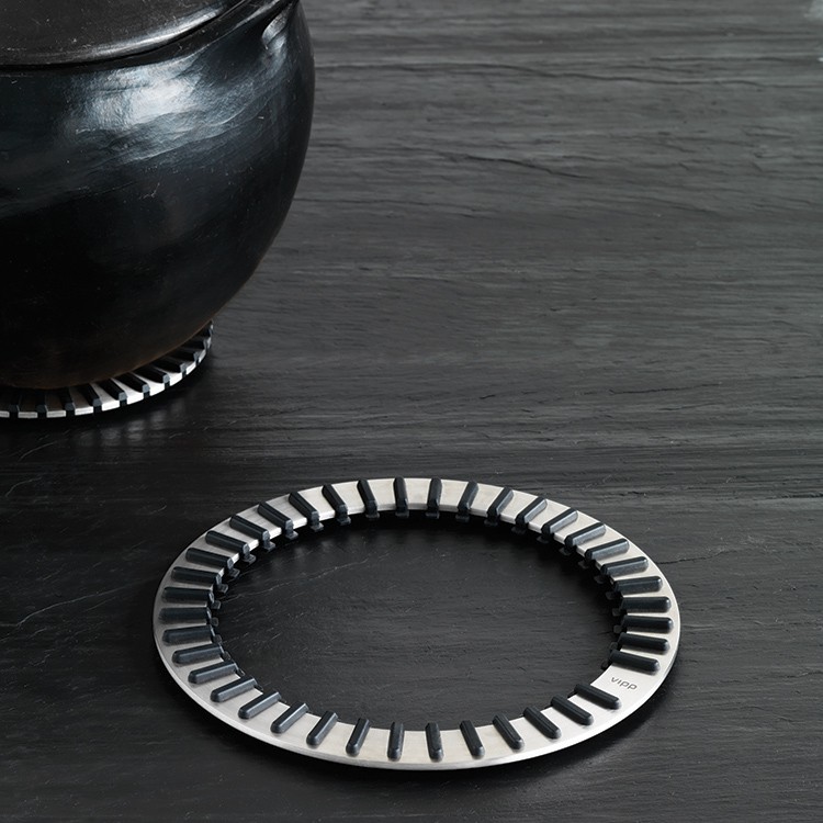 Le dessous de plat fonctionnel de Vipp est composé de deux pièces de tailles différentes s’emboîtant parfaitement et qui peuvent aussi être utilisées séparémment.