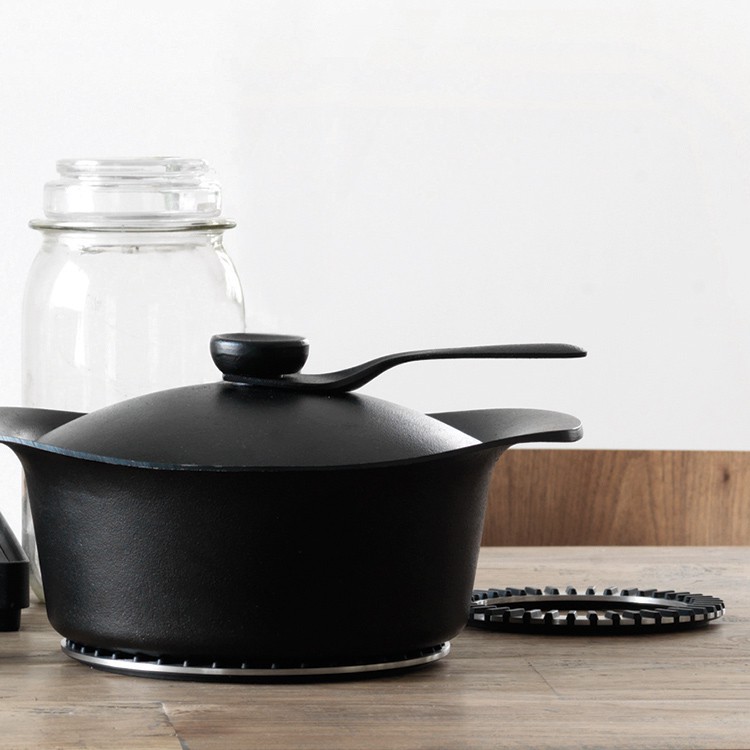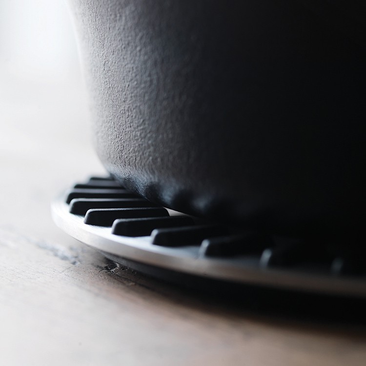 Les dessous de plat sont en acier inoxydable massif de 3 mm d’épaisseur. Les anneaux en acier ont été pourvus de profils en silicone résistant à la chaleur garantissant une bonne prise sous les plats chauds tout en protégeant les surfaces.