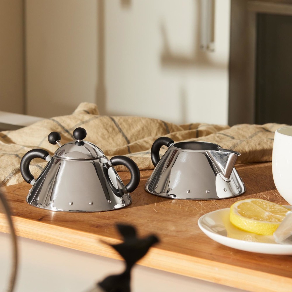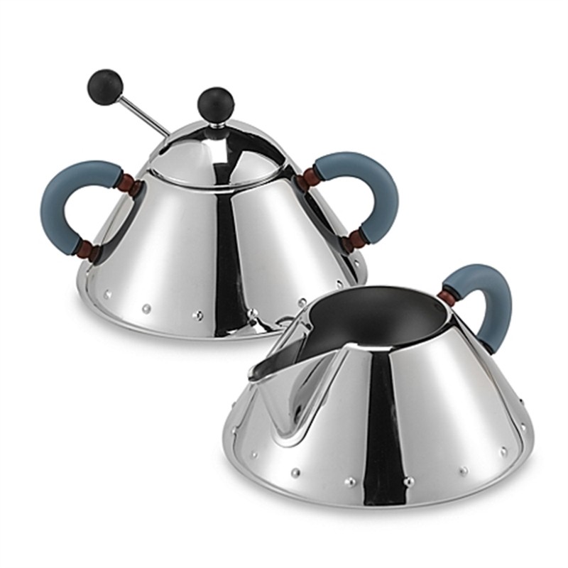 Graves a donné au sucrier un code visuel très personnel, où se fondent des influences qui vont de l’Art Déco au Pop Art, jusqu’au langage des dessins animés. Grâce à leur approche conceptuelle extraordinaire les objets de cette famille sont devenus des icônes du design des années 80 et 90, reconnues au niveau international.