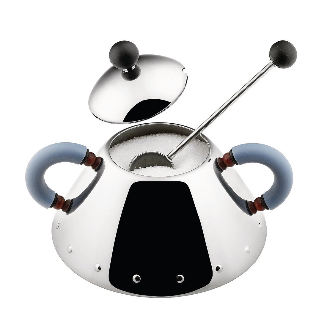 Graves a donné au sucrier un code visuel très personnel, où se fondent des influences qui vont de l’Art Déco au Pop Art, jusqu’au langage des dessins animés. Grâce à leur approche conceptuelle extraordinaire les objets de cette famille sont devenus des icônes du design des années 80 et 90, reconnues au niveau international.