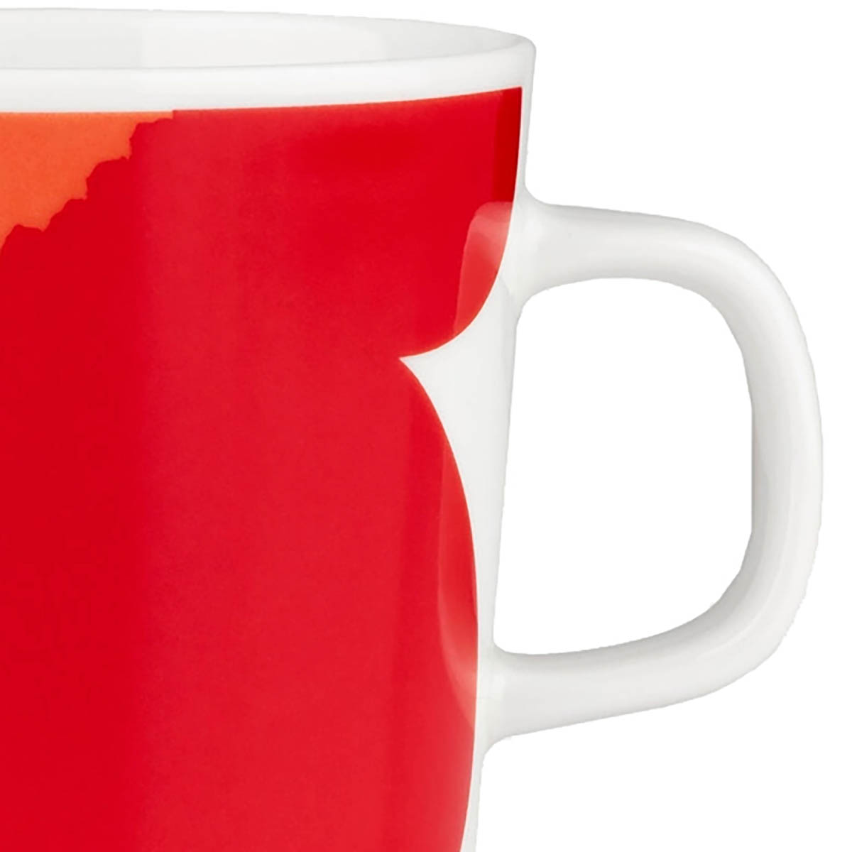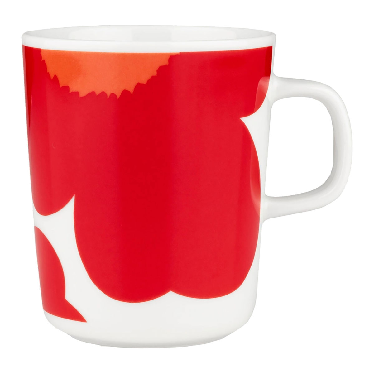Le Mug Oiva est fabriqué en céramique blanche et arbore le motif Iso Unikko en rouge.