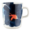 Mug Marimekko Oiva 2.5dl Valssi blanc, bleu, orange sur fond blanc.