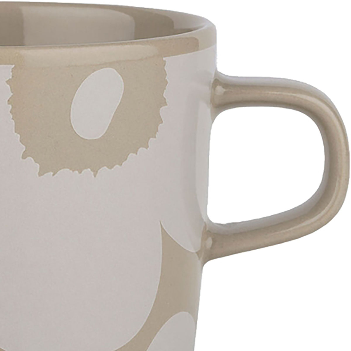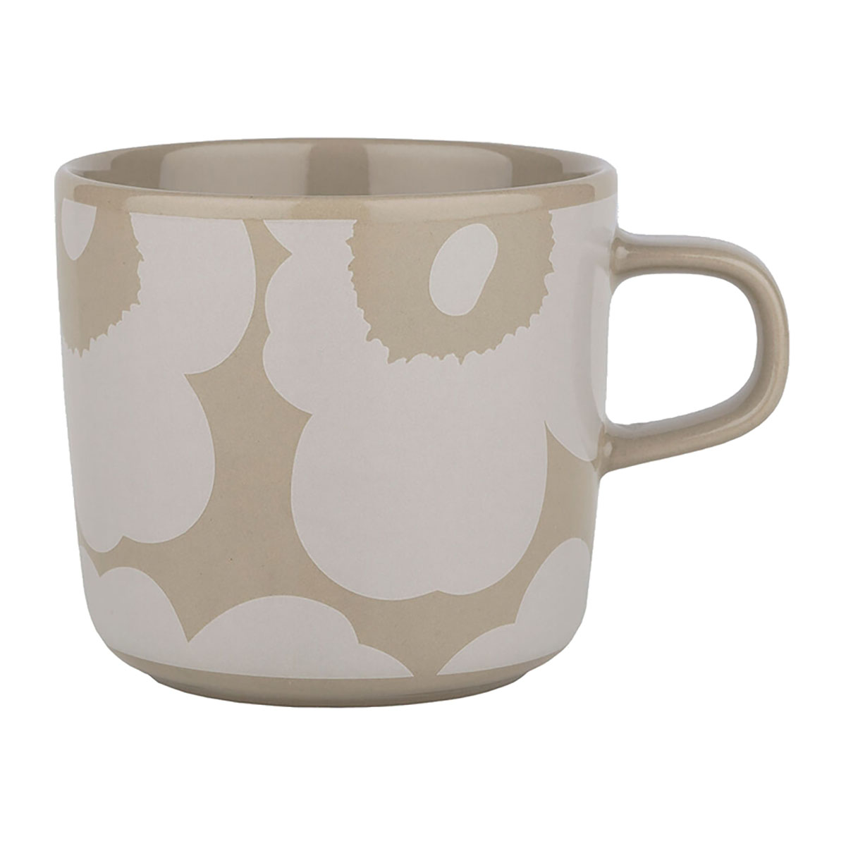 Cette tasse à café Oiva est décorée du motif Unikko. Elle est en grès blanc qui va au lave-vaisselle, au four, au micro-ondes et au congélateur.
