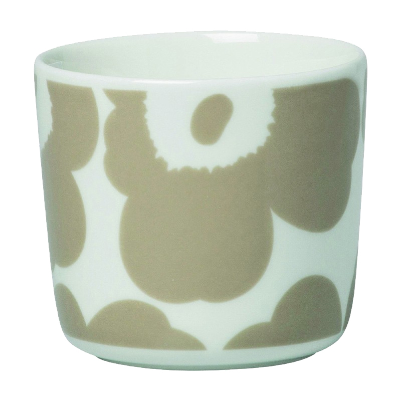 La tasse à café Oiva n’a pas de anse, elle est décorée du motif classique Unikko. Elle est en grès blanc, résistant au lave-vaisselle, au four, au micro-ondes et au congélateur.