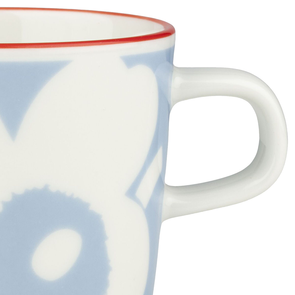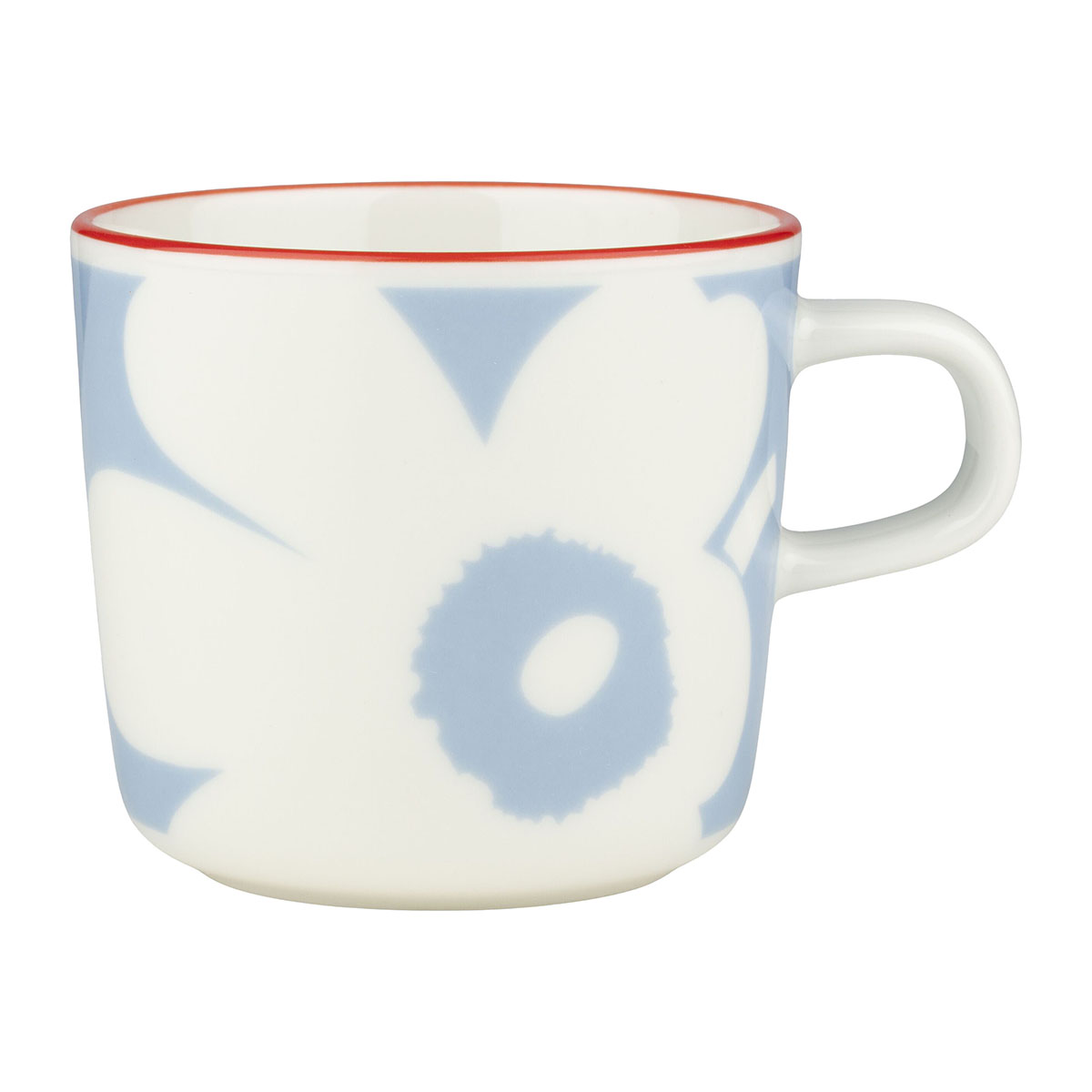 Marimekko tasse à café Oiva/Unikko 2dl blanc, bleu clair, rouge-orange.