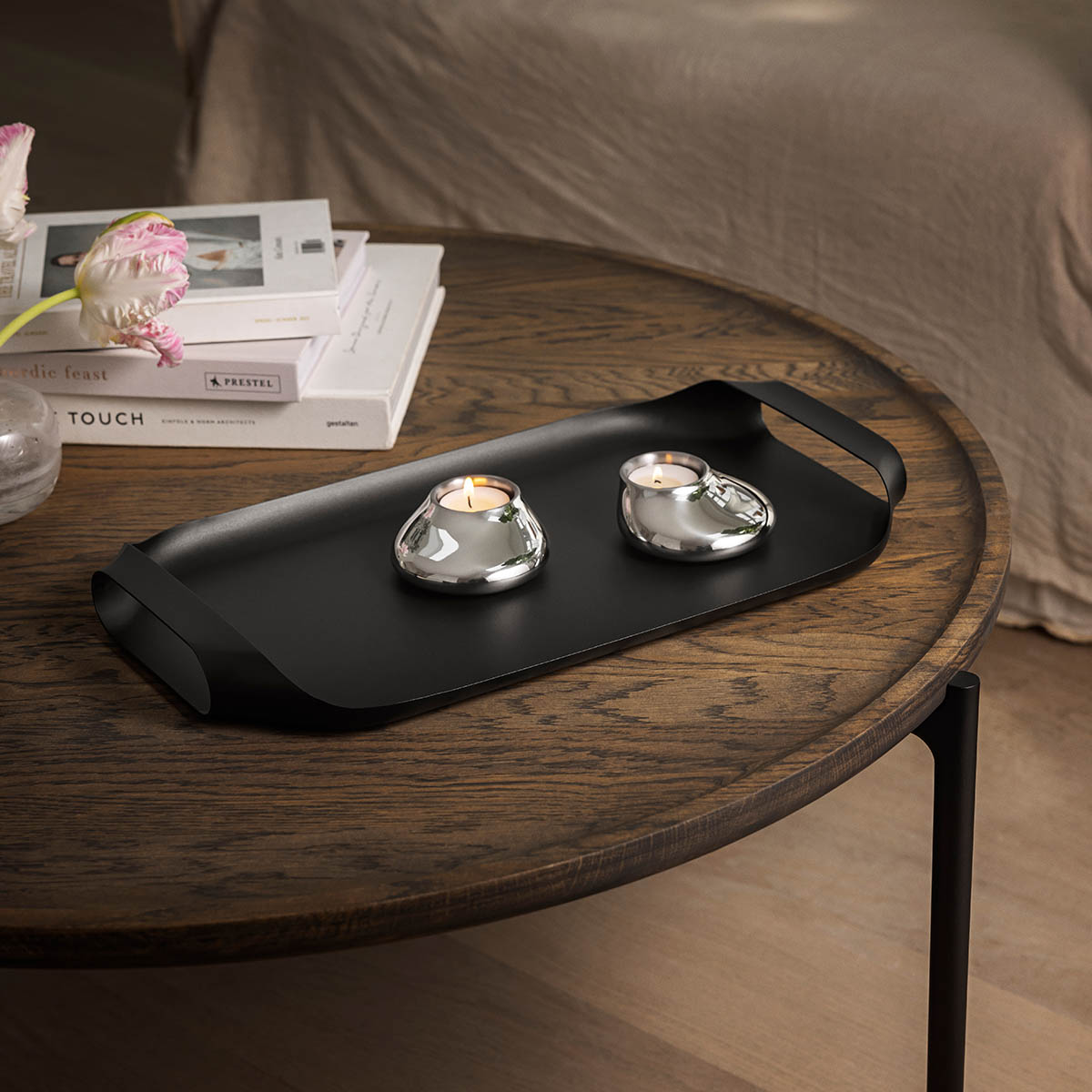 Cet élégant plateau accompagne vos moments conviviaux, que vous serviez le petit déjeuner au lit ou des boissons fraîches sur la terrasse. Réalisé dans un seul morceau d’acier, sans aucune soudure ou jointure, il possède une allure lisse et épurée. Ses poignées basses renforcent sa stabilité, même lorsque le plateau est bien chargé.