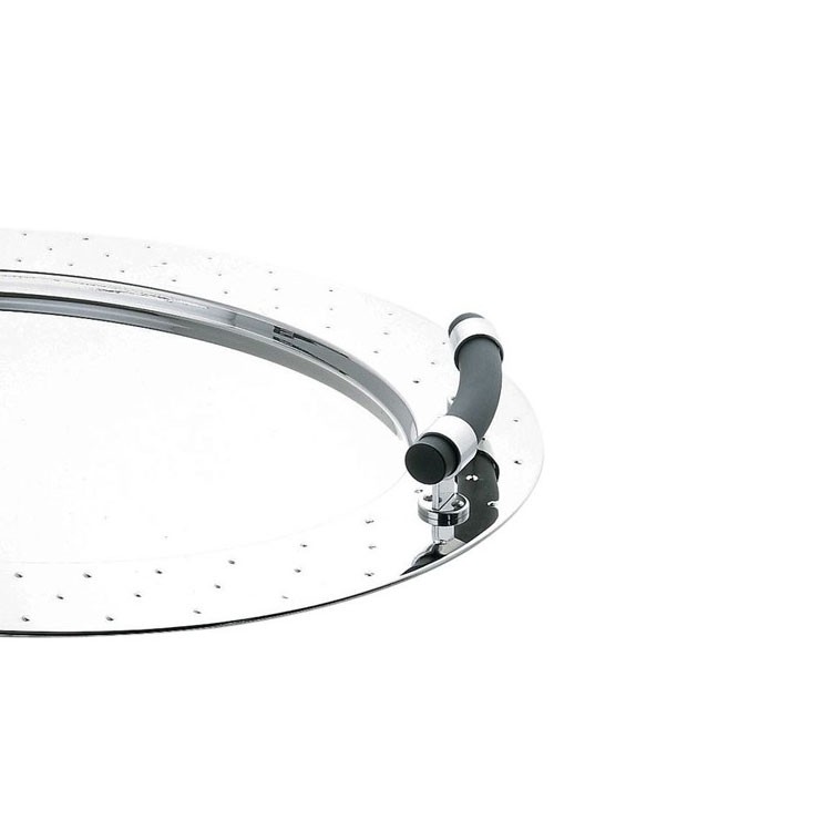 Matière : plateau en acier inoxydable 18/10 brillant, poignées en PA noir.