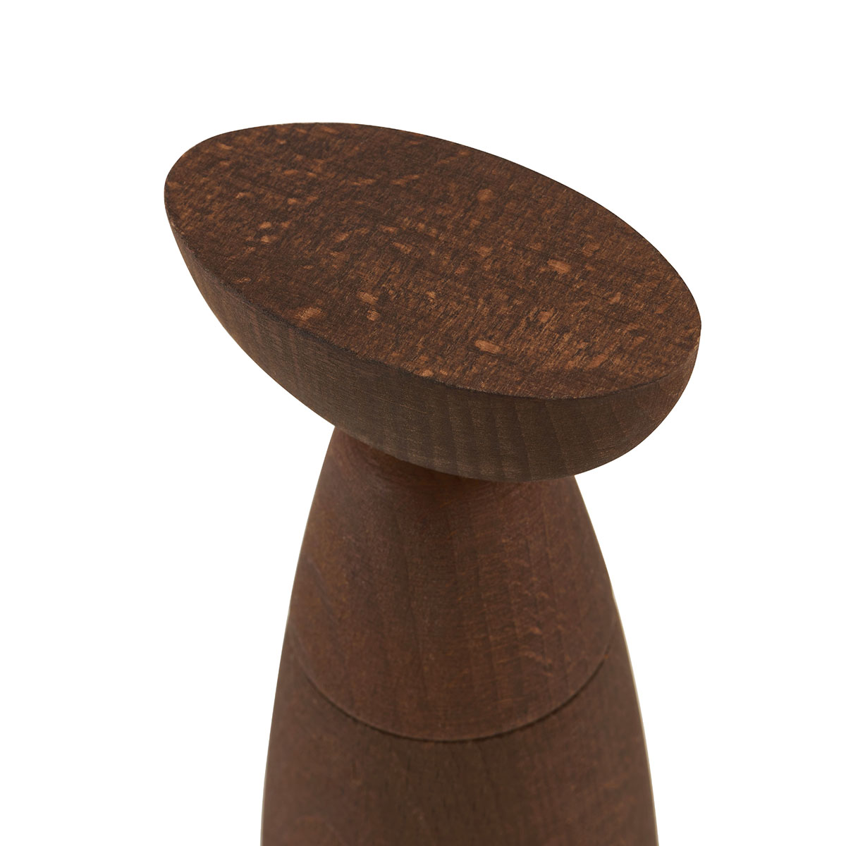 Le bois de hêtre de ce moulin est traité avec une huile teintée en brun qui confère une chaleur élégante à la structure naturelle du bois. Chaque pièce est unique et agréable au toucher – un hommage au travail artisanal.