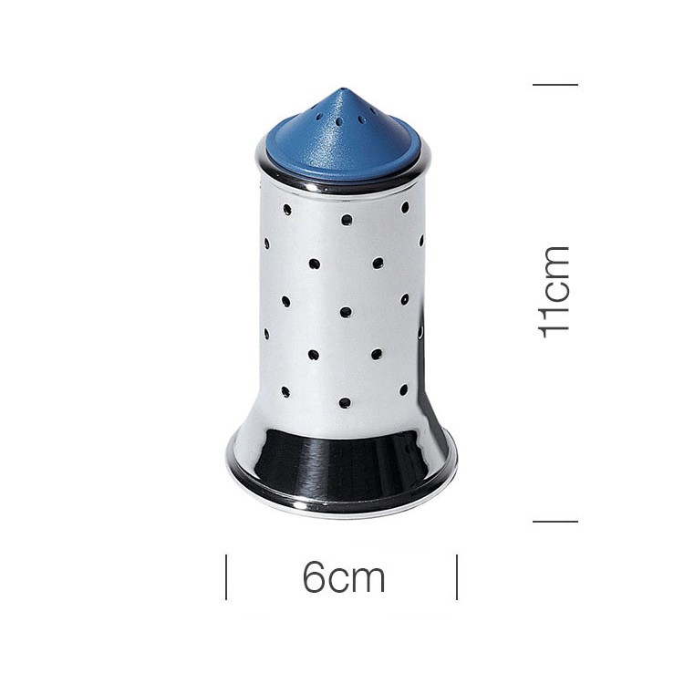 Alessi MGSAL – salière en acier inoxydable 18/10 brillant avec couvercle en PA, bleu clair. Design Michael Graves.