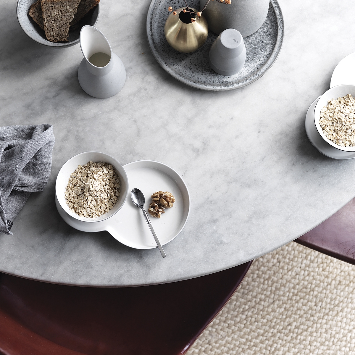 En collaboration avec la cérmiste danoise Annemette Kissow Vipp a développé une collection de 7 produits composée de: bol, pot à lait, coquetier, petit plat, tasse à expresso, tasse à café, tasse à thé.