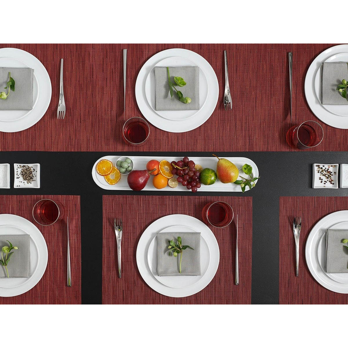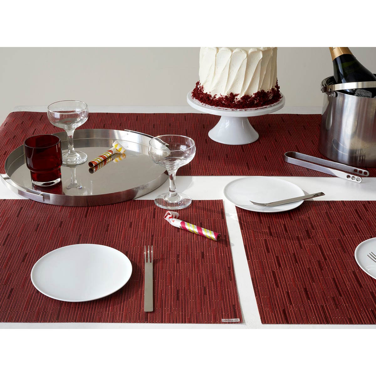 Les sets de table Chilewich se nettoient très facilement avec du savon, de l’eau et une éponge ou un chiffon doux. Frotter les taches tenaces avec une brosse à poils doux et un nettoyant à base d’eau de Javel.