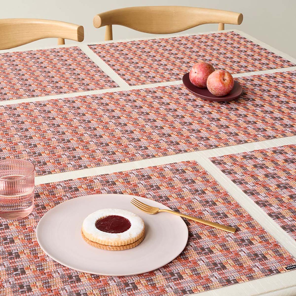 Les sets de table Chilewich se nettoient très facilement avec du savon, de l’eau et une éponge ou un chiffon doux. Frotter les taches tenaces avec une brosse à poils doux et un nettoyant à base d’eau de Javel.
