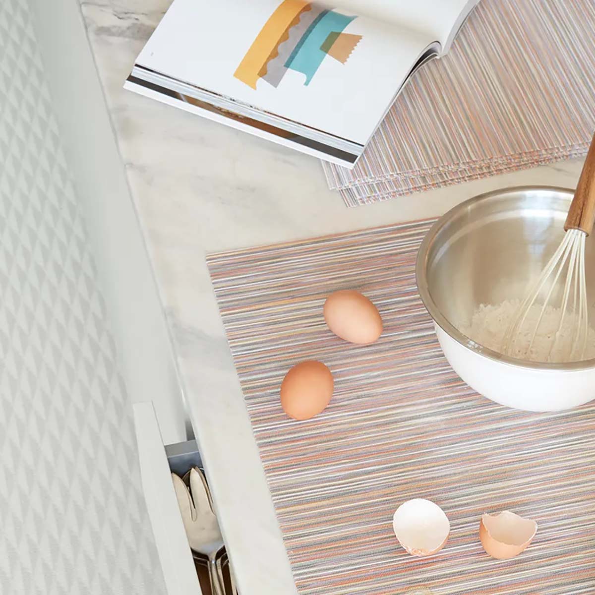 Robuste mais raffiné par de subtiles stries, Rib Weave offre un look de fibres naturelles avec l’exceptionnelle durabilité de toutes les produits Chilewich. Ce design original mettra en valeur n’importe quelle table avec sa texture riche.