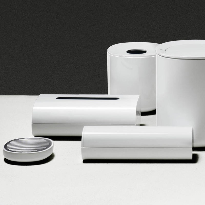 Birillo est une série minimaliste et élégante d’objets utiles pour la salle de bains, avec un fin équilibre entre le minimalisme de la forme et les matériaux utilisés. La collection présente une forme de carré arrondi, minimal et essentiel et très soigné. Les object sont simples mais jamais banals.