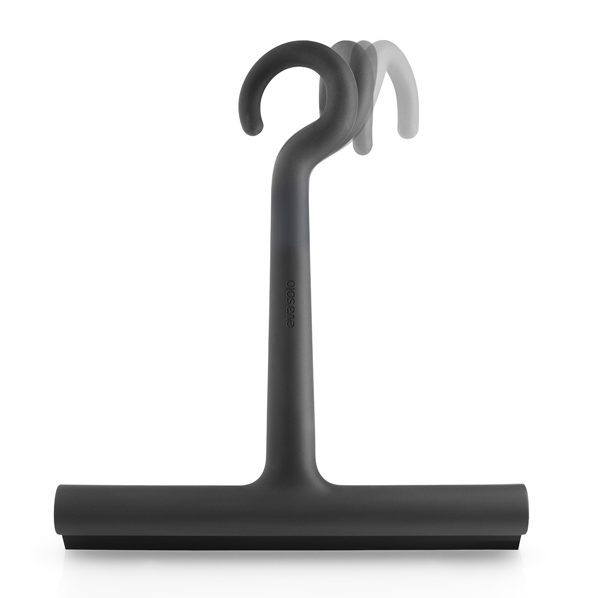 Le crochet flexible sur la poignée permet de fixer facilement la raclette sur la porte ou sur l’armature de douche. Elle est ainsi toujours à portée de main après la douche.