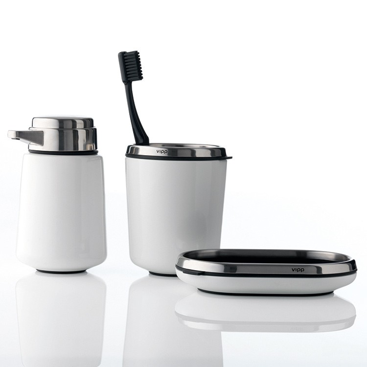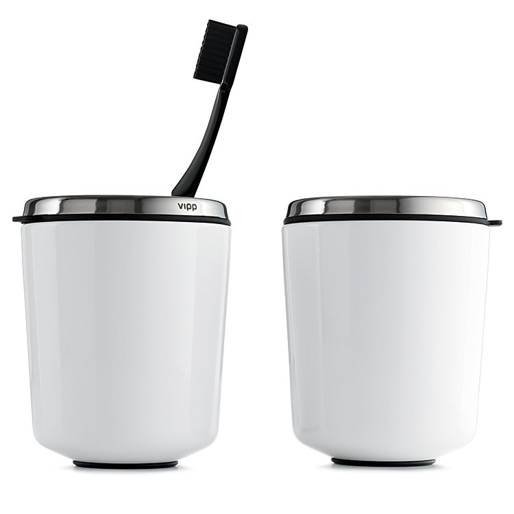 Le porte-brosse à dents est divisé en deux compartiments. La base en caoutchouc souple protège les surfaces de la salle de bains. Toutes les parties en caoutchouc résistent au lave-vaisselle.