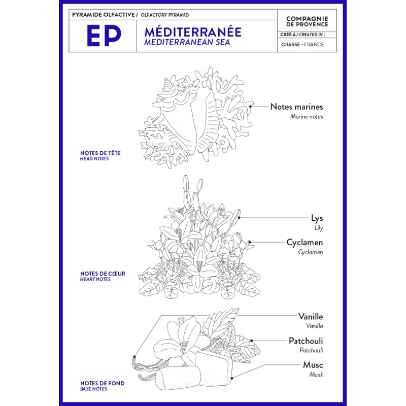 Parfum Méditerranée : parfum aux notes marines et ensoleillées qui évoque la fraîcheur des côtes Méditerranéennes. Parfum créé en Provence.