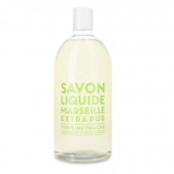 Les bouteilles de 1 litre sont disponibles dans les parfums incontournables de fleurs et fruits de Provence qui constituent la gamme de savon de la Compagnie de Provence. Ces bouteilles permettent la recharge des flacons pompes de 300ml et de 500ml.