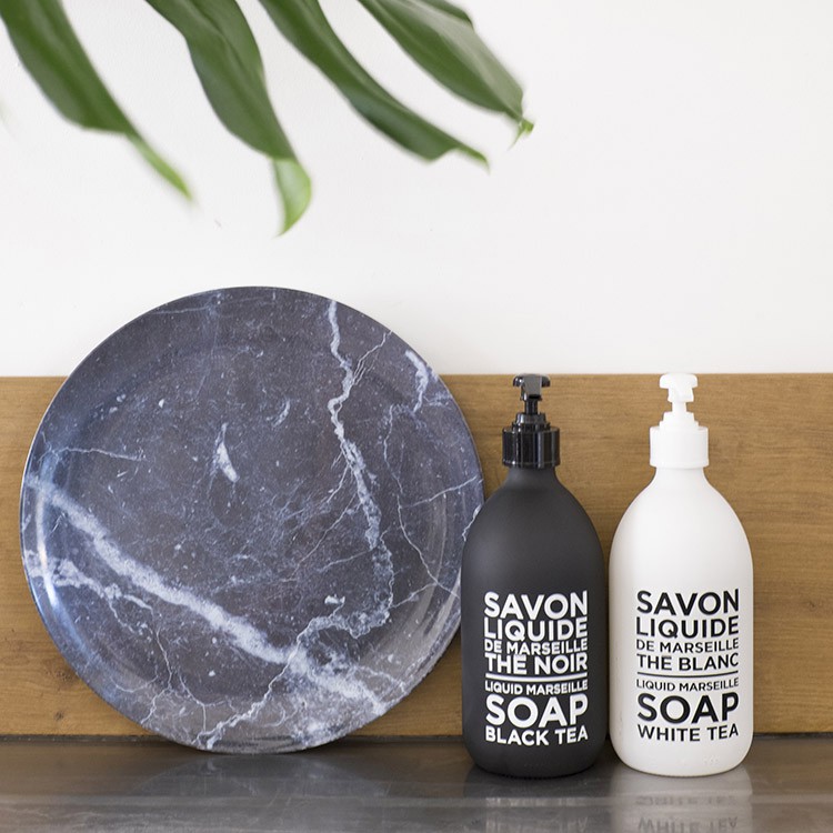 Présenté dans un flacon-pompe en verre laqué de 300ml, son design à la fois intemporel et contemporain utilise la force du contraste pour créer un univers graphique qui inspire.