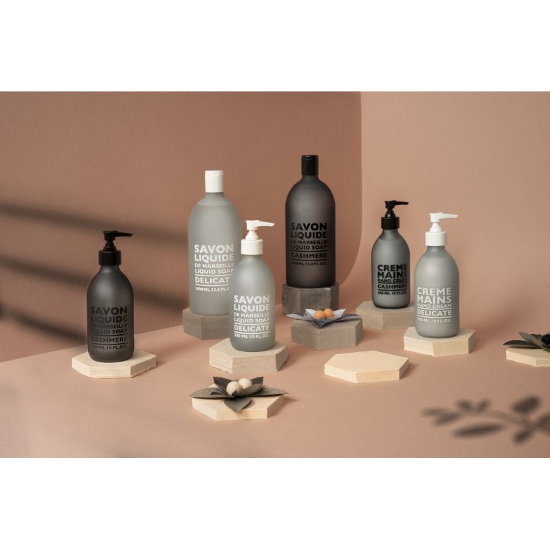 Économique, refermable et hermétique, le savon liquide de Marseille Cashmere se décline en flacon-recharge 1 litre en plastique