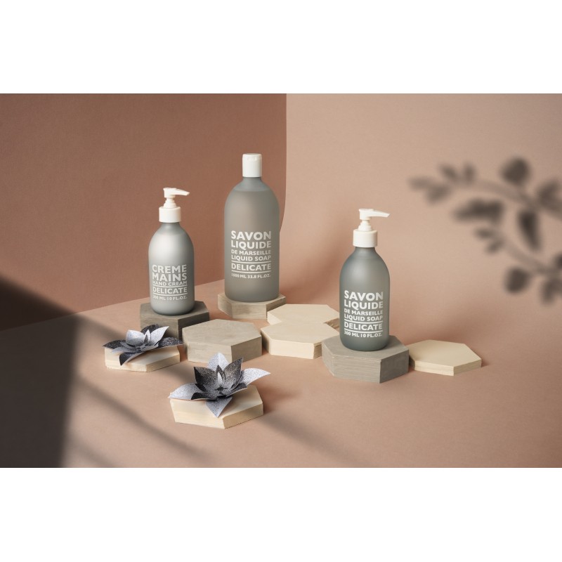 Saponifié au chaudron selon la tradition, ce savon liquide de Marseille Delicate nettoie la peau tout en douceur.