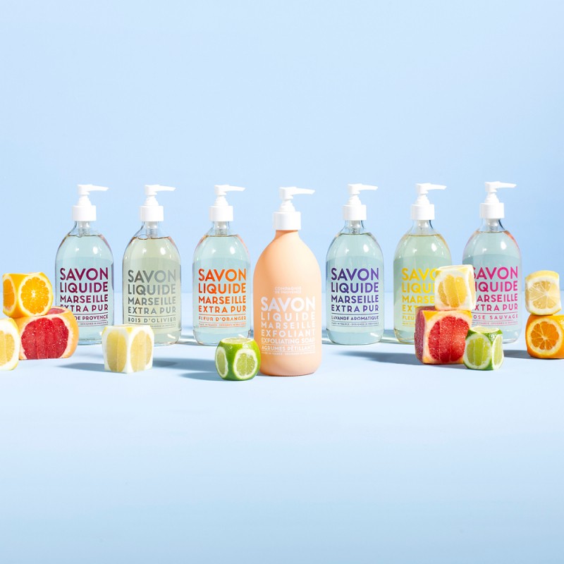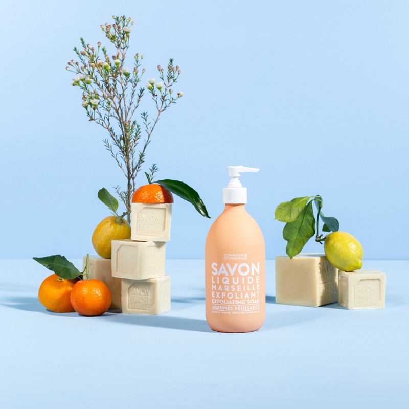 Le savon liquide de Marseille exfoliant a été imaginé pour nettoyer et exfolier le corps et les mains en un seul geste tout en douceur.