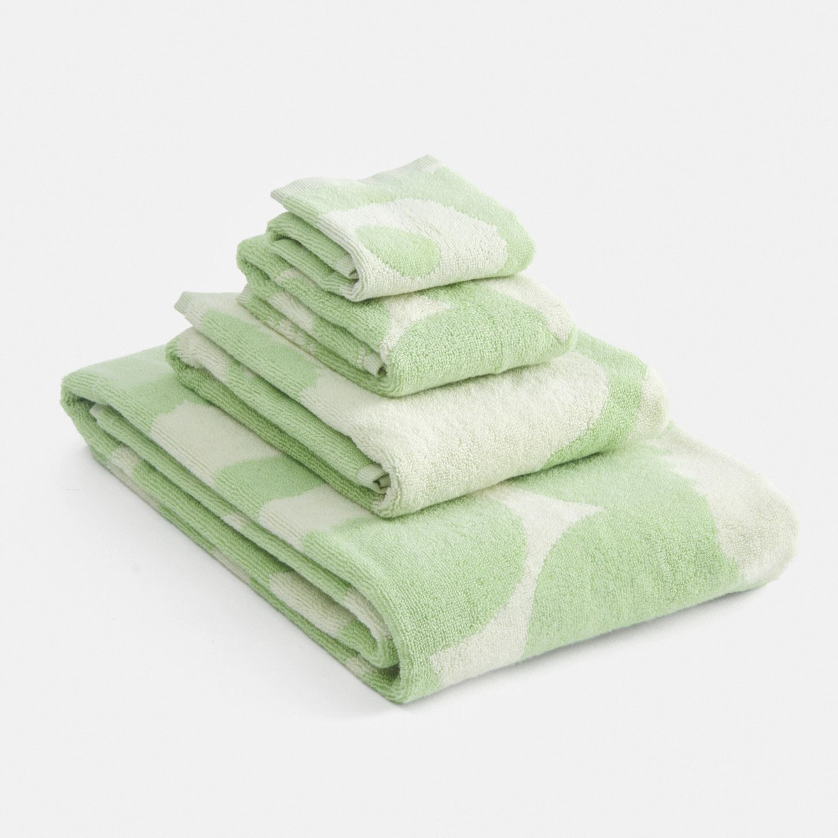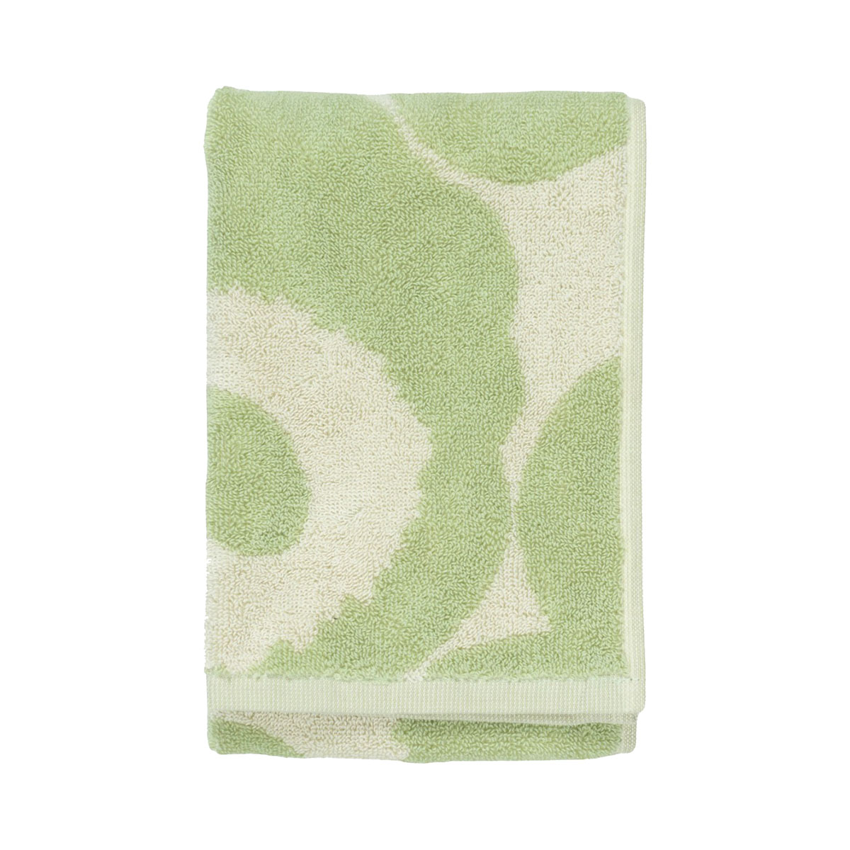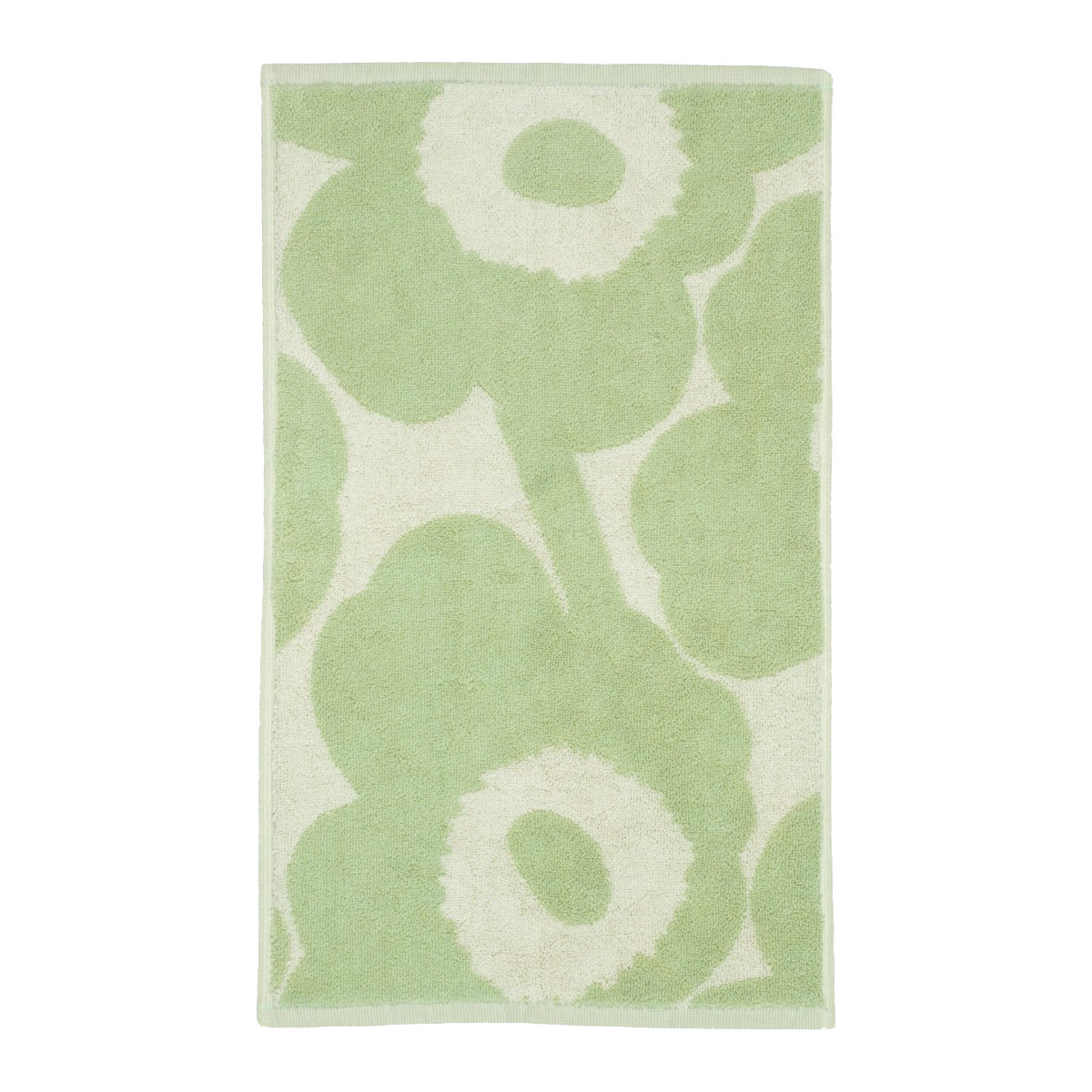 Le linge pour invités 30x50cm au motif Unikko blanc cassé-sauge est fabriqué dans du tissu éponge à partir de coton bio.