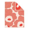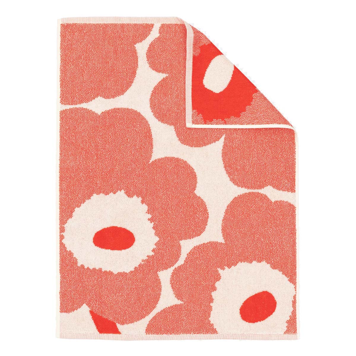 Cette collection de linges de bain est fabriquée en coton éponge 100% biologique. Le motif unikko est décliné dans une couleur naturelle de coton et de rouge-orange. Les linges ont deux différentes faces de part leur fabrication : une face où la couleur est dominante en est l’opposé sur l’autre face.