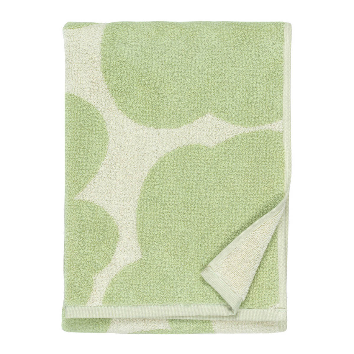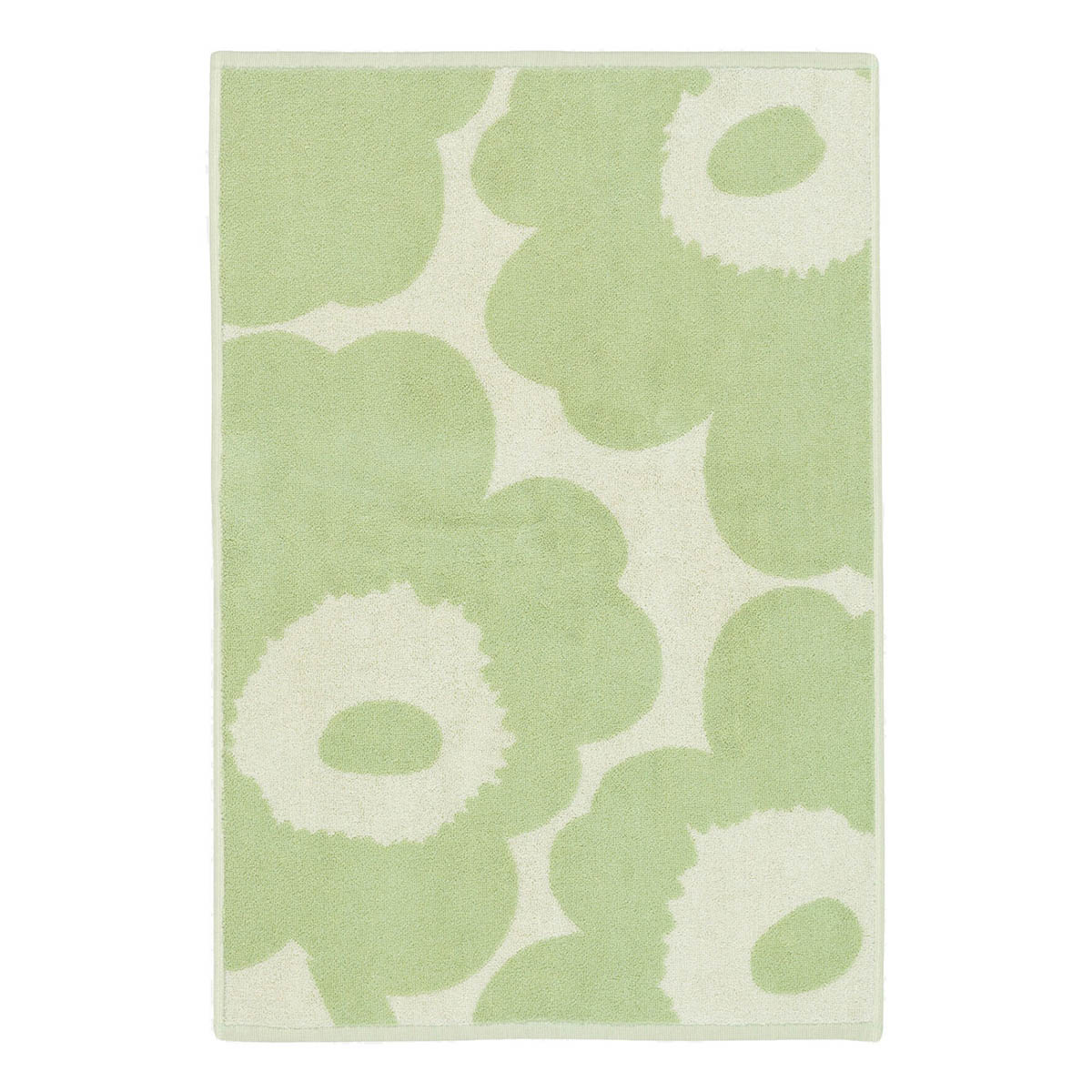Le linge pour les mains au motif Unikko est en éponge de coton biologique. Les couleurs du motif sont inversées de l’autre côté de la serviette.