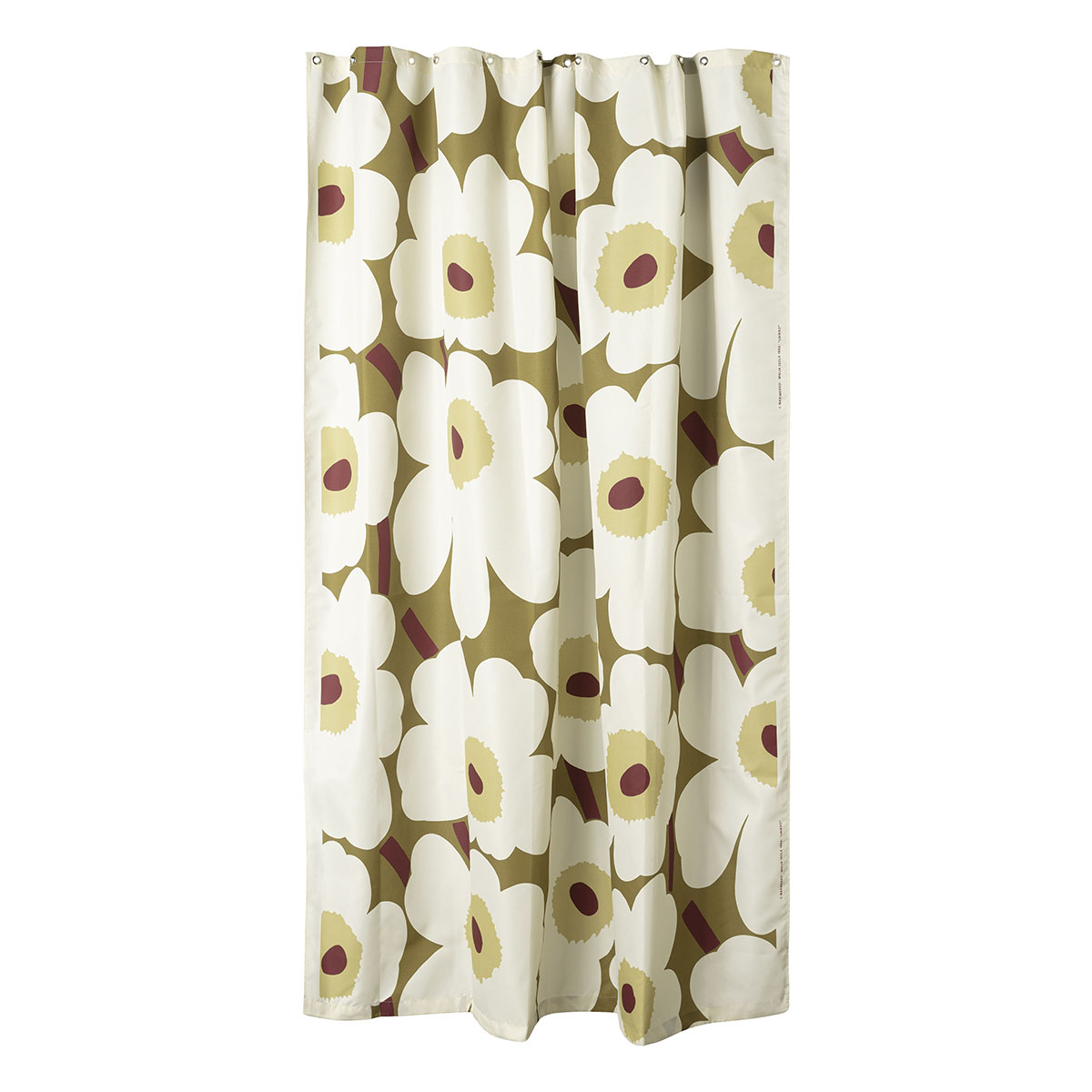 Le rideau de douche à motif Unikko argile, crème est fabriqué en polyester recyclé.