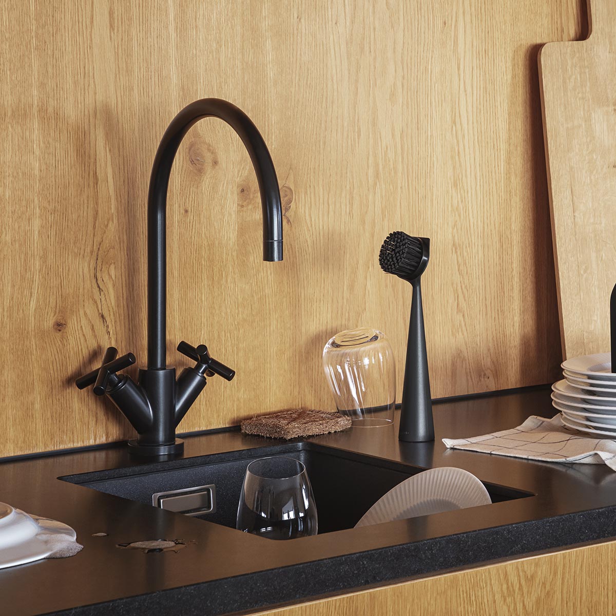 Pour garantir l’hygiène dans la cuisine, on place la brosse à la verticale sur la surface de travail après utilisation, les picots en nylon doux et résistants sèchent ainsi rapidement. Grâce à un poids dans le manche, la brosse est toujours stable. Elle résiste aux températures élevées et passe au lave-vaisselle.
