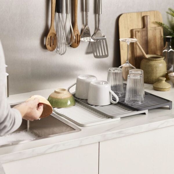 Cet égouttoir pratique peut être étendu à plus du double de sa taille pour fournir un espace d’égouttage de grande capacité partout où vous en avez besoin.