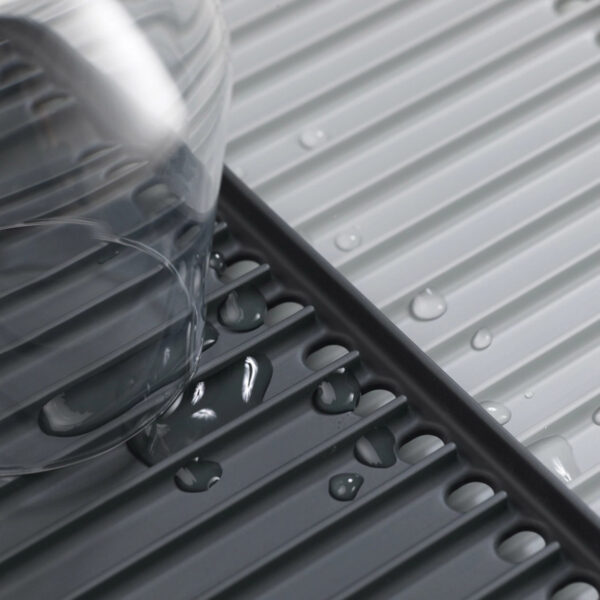 Il suffit de le placer sur une surface plane et de tirer sur chaque extrémité pour l’étendre. Chaque étage est dotée d’une large plate-forme pour la vaisselle et de nervures surélevées pour éviter que l’eau ne reste bloquée à l’intérieur des tasses et des verres.