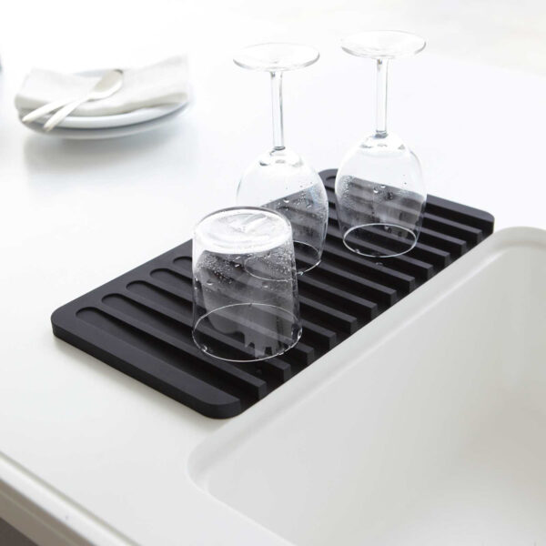 La conception en pente de ce tapis de drainage permet à l’excès d’eau de refluer directement dans l’évier.