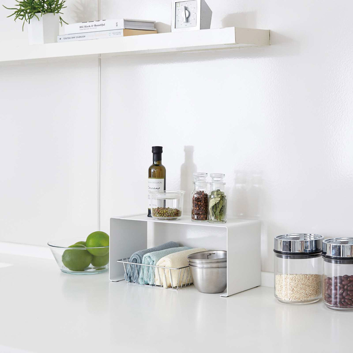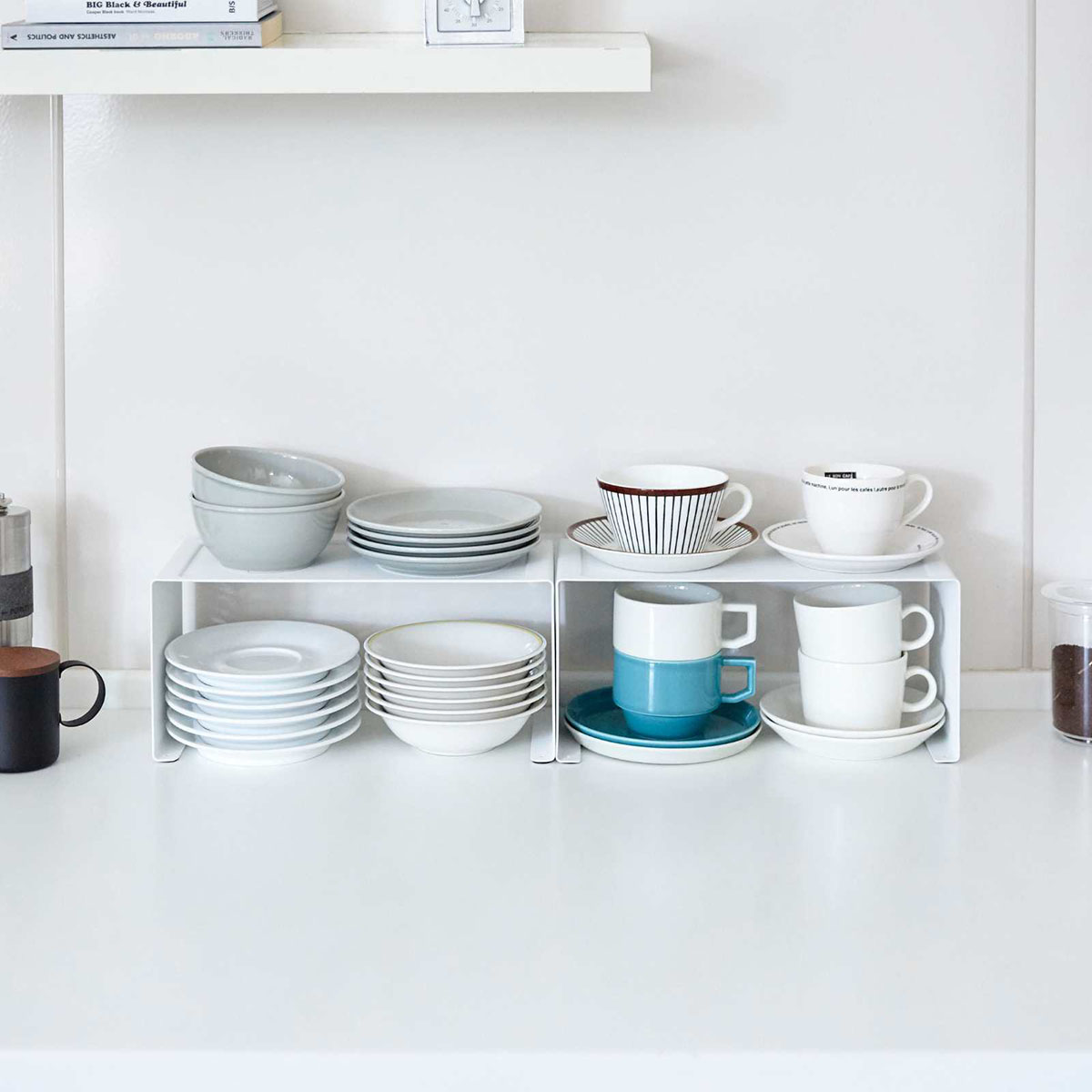 Optimisez votre cuisine avec ce support empilable. Cette étagère optimise l’espace de votre plan de travail en ajoutant un niveau supplémentaire. Idéale pour organiser des assiettes, tasses et ingrédients, elle peut aussi être empilée pour augmenter la capacité de rangement.