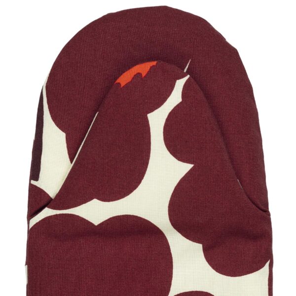 La mitaine de four à motif Pieni Unikko est en coton et imprimé à Helsinki. Elle est rembourrée et dotée d’une boucle de suspension.