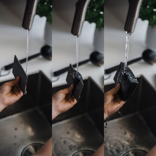 La sobre éponge pop-up noire est un must pour toute cuisine moderne et durable : elle s’intègre discrètement dans ton intérieur et peut être facilement compostée après plusieurs lavages.